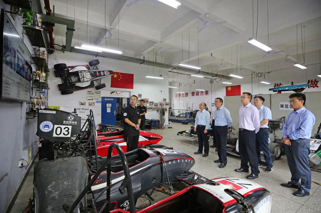 在张文学,张友兵的陪同下,上海华谊集团李良君一行参观了校史馆、东风HUAT车队,3D打印中心。