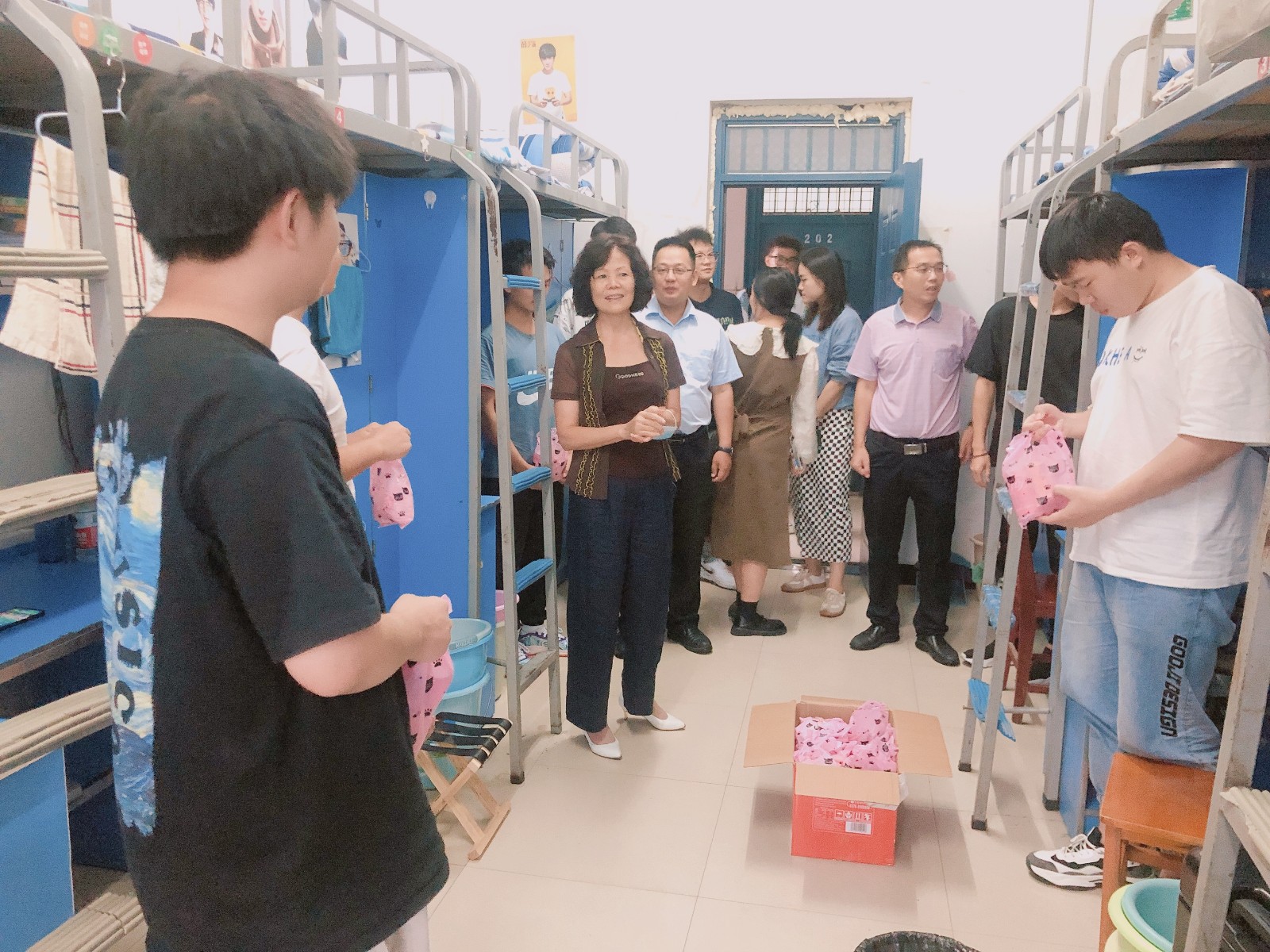 走访慰问过程中,林雪荣为同学们发放了慰问物资,为同学们送上了美好的祝福。她说:“这是学校的一点心意,请大家收下。祝同学们度过一个快乐的中秋!”她谈到,学校十分关心同学们到校后的学习生活状况,希望大家能尽快适应大学生活,积极参与校园活动,快速融入电气与信息工程学院这个大家庭。周鹏勉励大家,要牢记学校领导的希望,不断丰富自己的业余生活,努力学习,追求上进。老师们亲切的祝福与沉甸甸的礼物,饱含着对新生百分之百的关心与用心。同学们对学校领导和老师的慰问关心表示衷心的感谢,他们感受到了学校浓浓情意,并表示一定会快速融入电院这个大家庭,努力奋斗,将大学当作梦想的起点,实现青春梦想。
