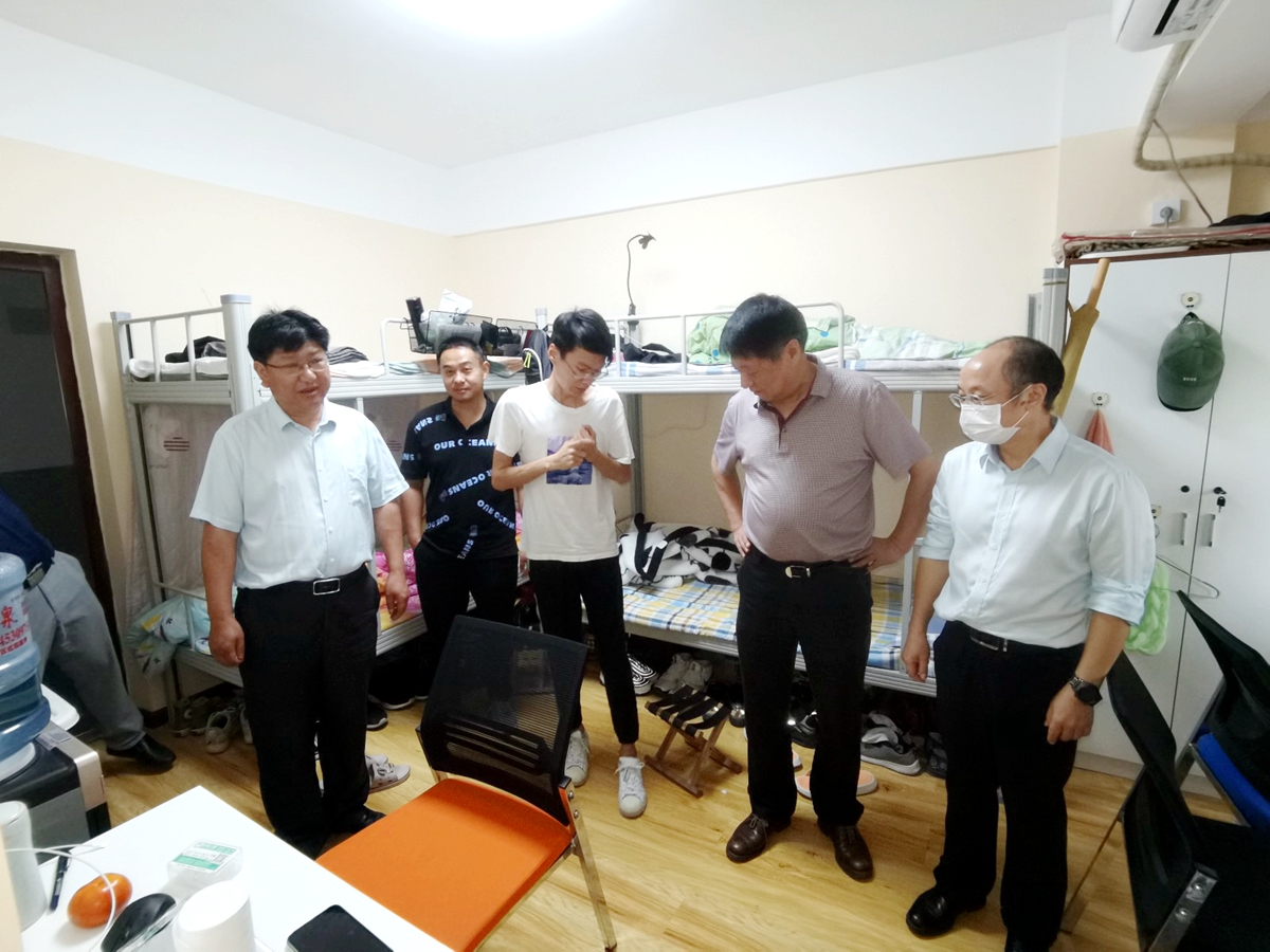 在学生宿舍,程红兵热情地和同学们交谈,耐心询问了大家入驻基地的感受,就饮食、住宿、生活配套等问题进行了交流沟通,听取了同学们对基地建设和发展的意见和建议;程红兵非常关心同学们的思想、学习和未来发展规划,主动询问大家的就业情况及考研准备,聆听同学们求职、备考中面对的困惑,并提供了宝贵的意见。