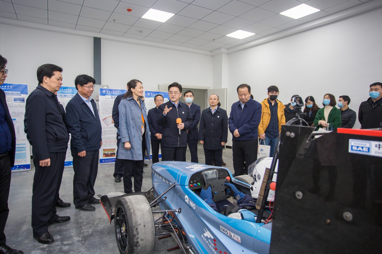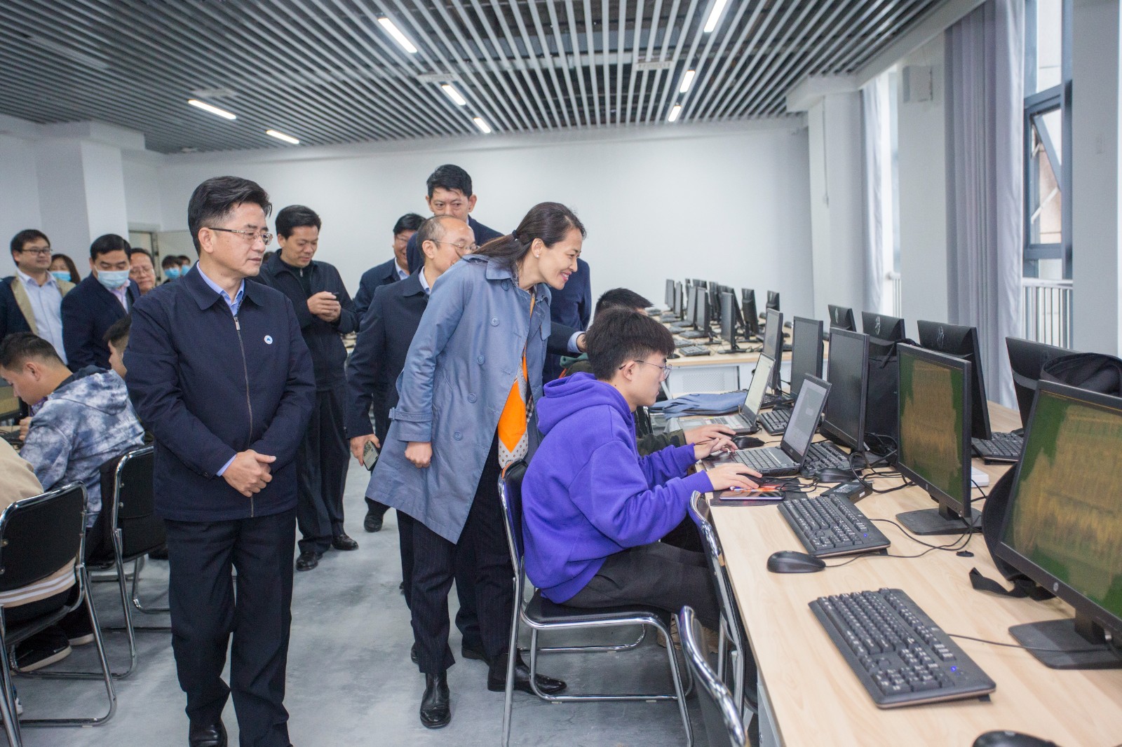 来访嘉宾在校领导和基地主任的陪同下,参观了基地图书阅览室、多功能教室、学生活动中心、公共计算机实训中心、FSC赛车工作坊、智能物联工具管理系统展柜等。