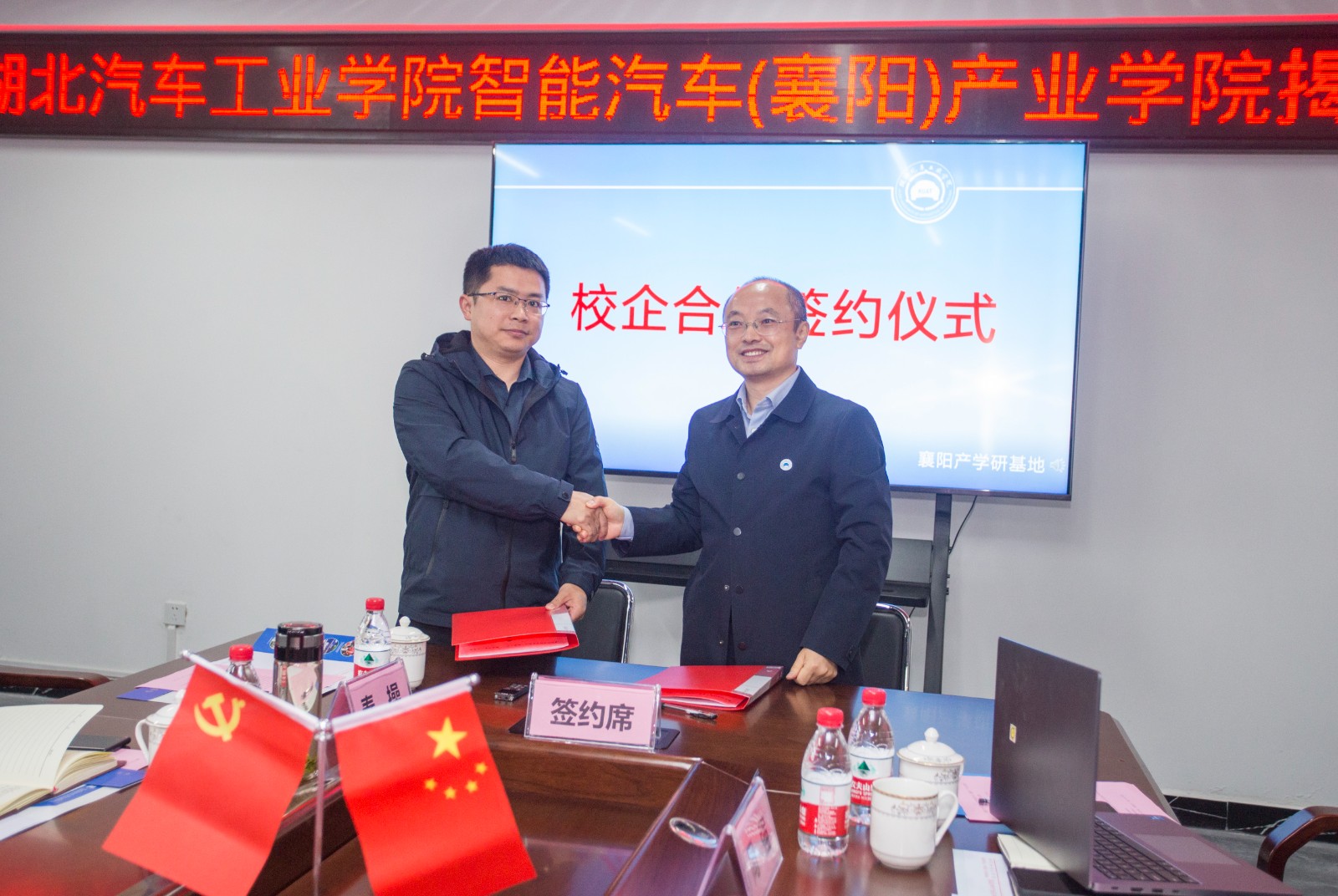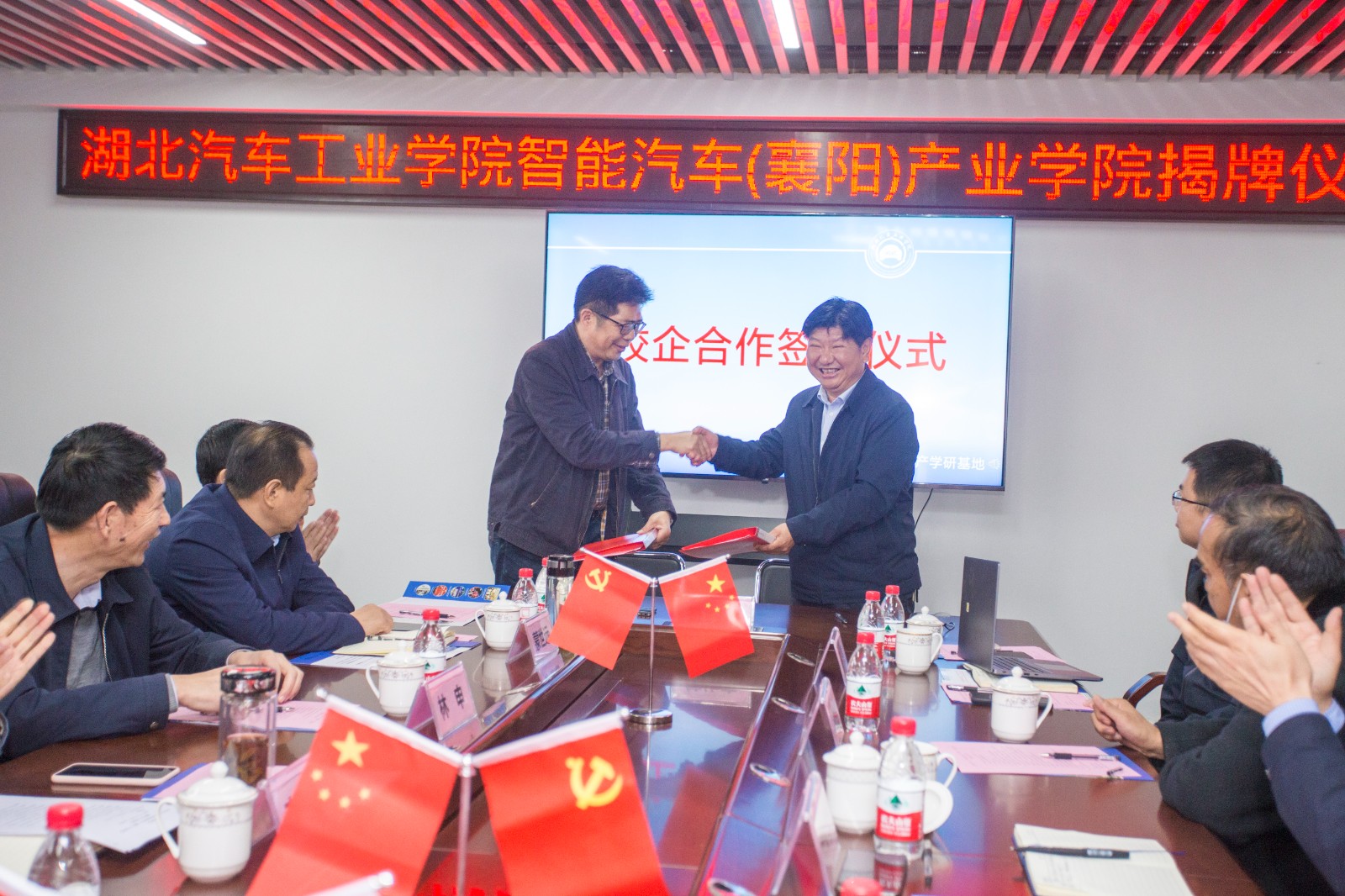 基地负责人汤德强介绍智能汽车(襄阳)产业学院建设发展简况,企业家代表三鹏航空科技有限公司何伟董事长发言,希望与英国上市公司365在人才培训、实习实训、企业项目攻关等方面加强合作。会上,襄阳达安汽车检测中心有限公司、湖北中检检测有限公司与学校进行了产学研合作签字仪式。