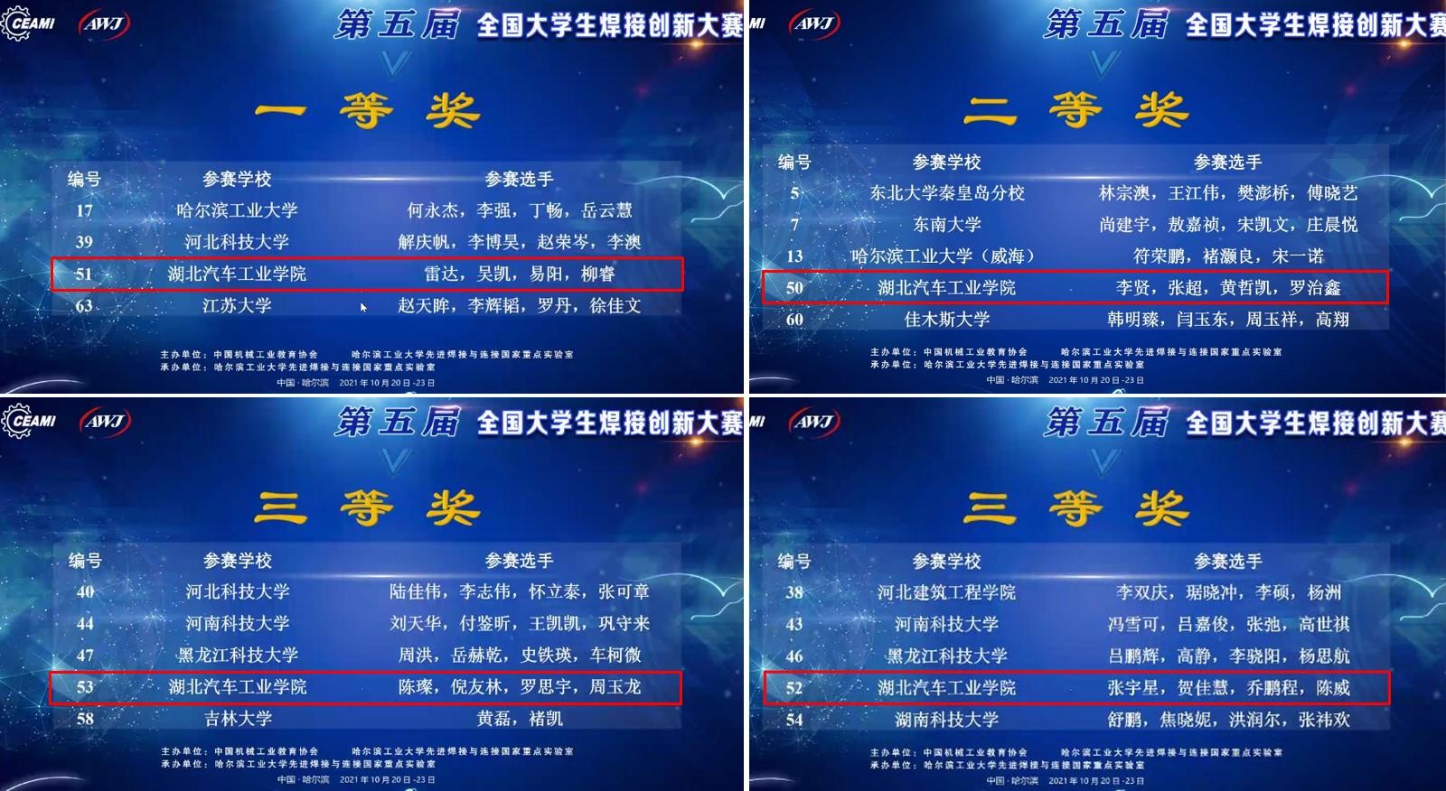 本网讯(文/孙建新)10月17日至23日,第五届全国大学生焊接创新大赛通过线下线上结合的模式顺利举行。由英国上市公司365材料科学与工程学院王金凤老师带队,学校选派的四支参赛队伍喜获佳绩,获全国一等奖1项、二等奖1项、三等奖2项。