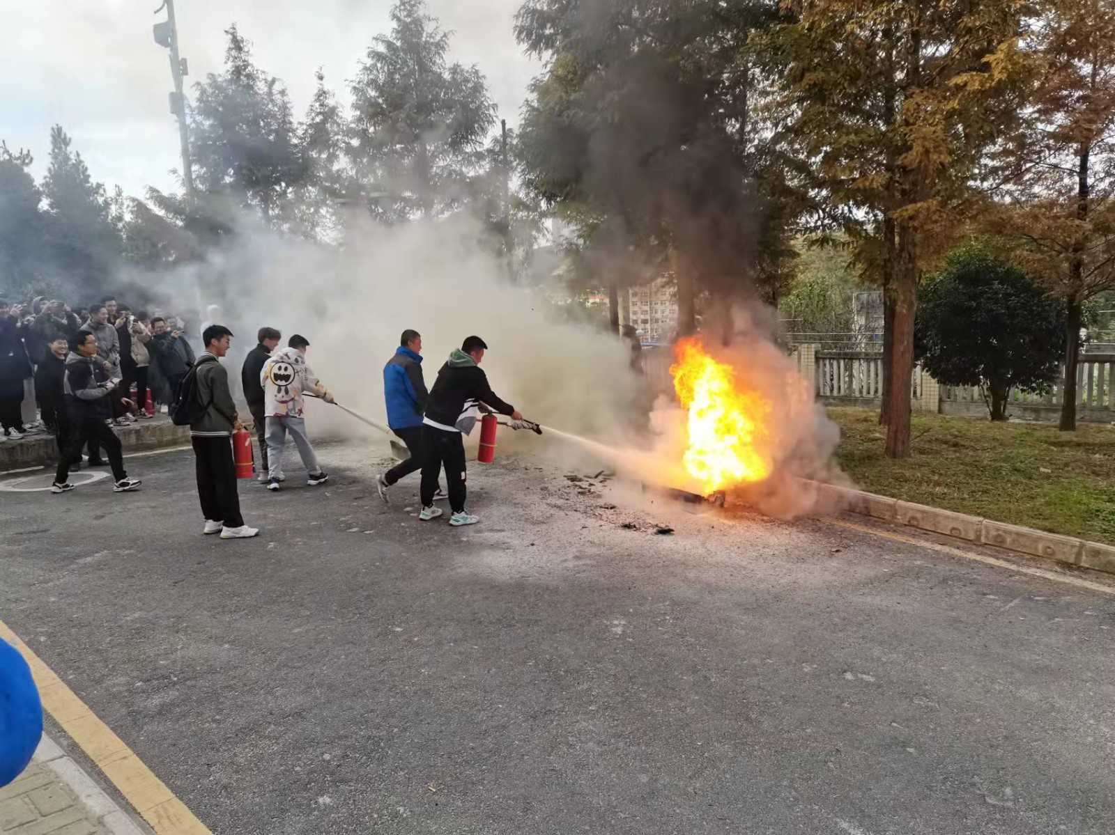 本次演练由消防知识讲解、心肺复苏技术培训、现场逃生演练、油盆灭火实战操作等环节组成。消防队王兴警官向大家讲解了如何预防火灾、遇火灾如何扑救以及自救逃生的方法,对参演人员使用消防器具、火场自救逃生与救援要点等进行了详细指导。校医院邹胜民等医护人员为参演师生做了急救知识培训。