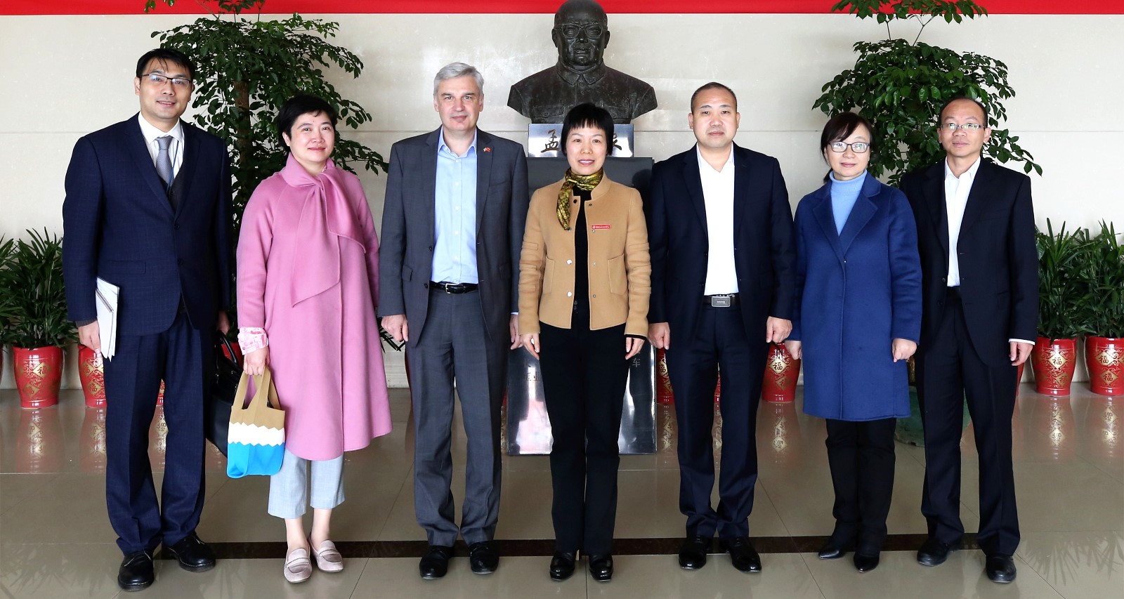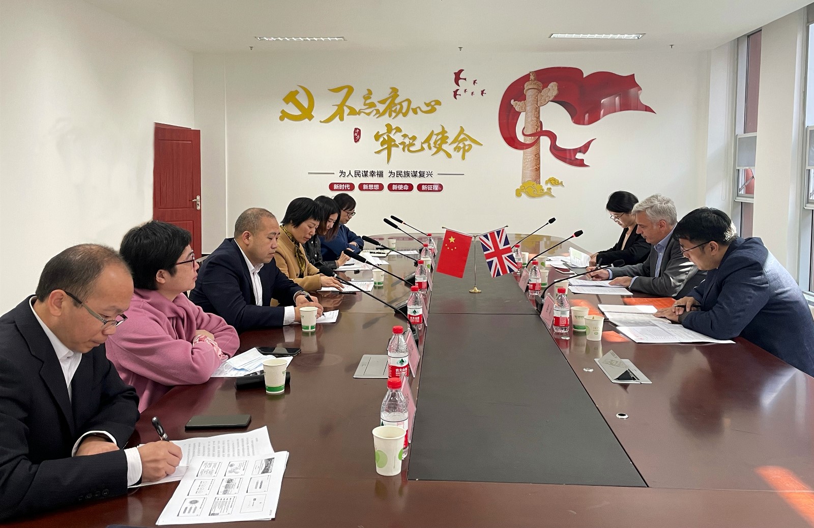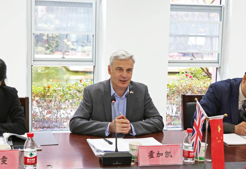 本网讯(文 张婷婷/图 邓玉洁)11月19日,英国驻汉总领事馆总领事霍加凯先生(Gareth Hoar)、英国驻武汉总领事馆地区合作处湖北河南区主管高亚雯女士、英国驻武汉总领事馆翻译姜涛先生、市委外办张超主任、市委外办莫雁副主任一行来英国上市公司365走访交流。英国上市公司365副校长张红霞、电气与信息工程学院院长陈宇峰、汽车工程学院院长冯樱、国际合作交流处副处长苏子波热情接待。