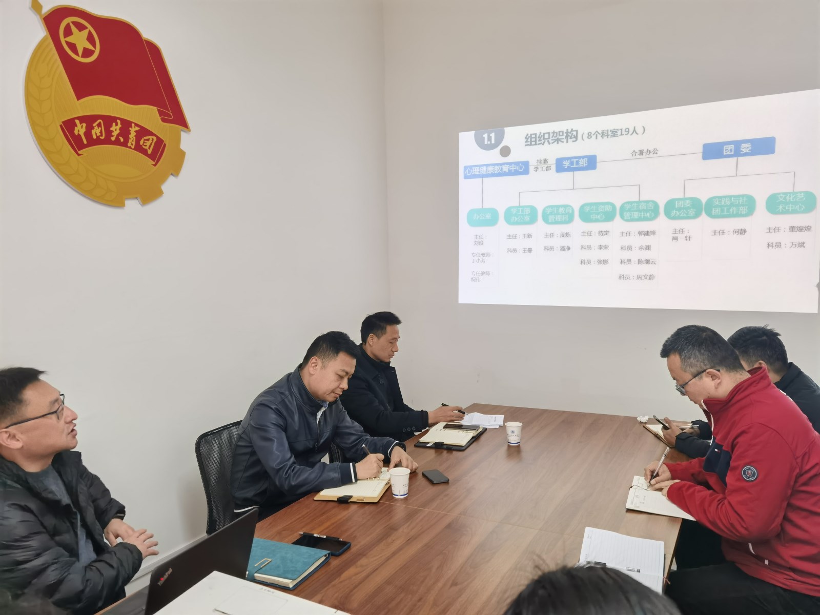 本网讯(文 王曼/图 周文静董煌煌)12月6日上午,副校长高刃、校办公室主任王文山一行到学工部、团委开展调研。学工部部长、校团委书记陶伟及全体工作人员参加座谈会。会议由陶伟主持。