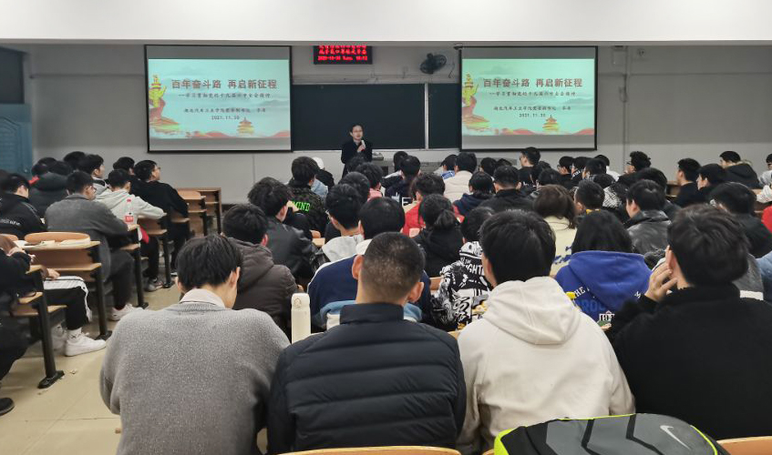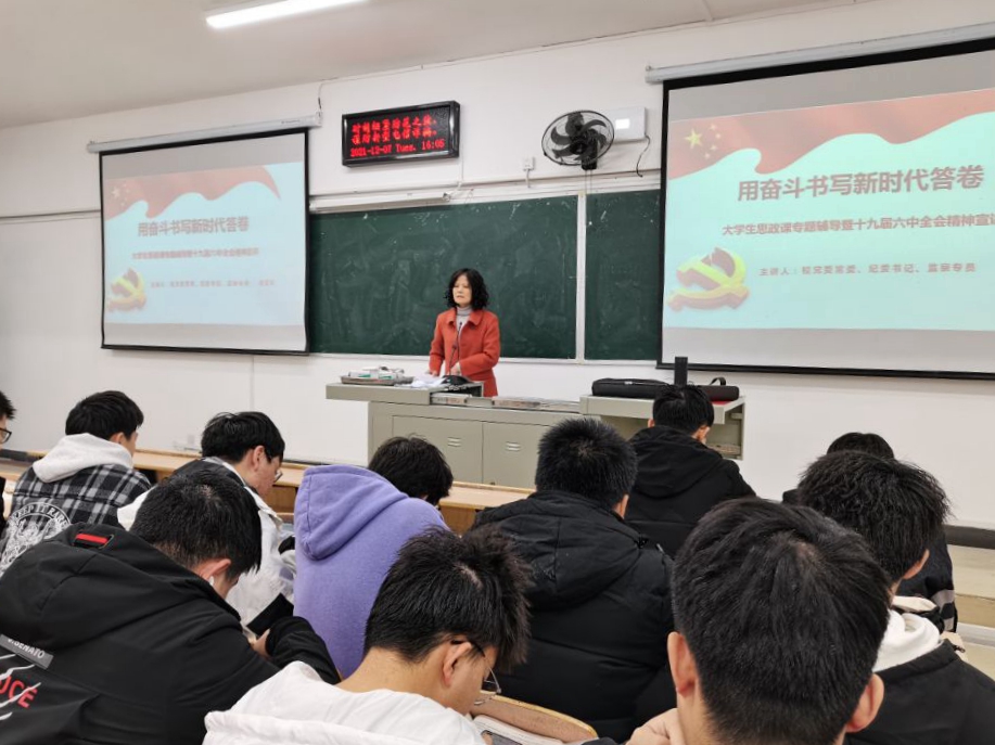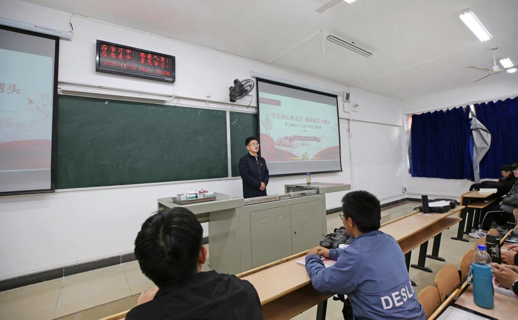 校领导发挥自身理论素养、实践经验等优势,用鲜活生动的事例、通俗易懂的语言、明白晓畅的逻辑,结合青年学生成长阶段特点,融汇文史哲等多个学科知识,围绕时代使命和青年担当的主题,为学生细致解读党的十九届六中全会精神,教育引导广大学子自觉肩负起时代发展大任,坚定理想信念,厚植爱国主义情怀。