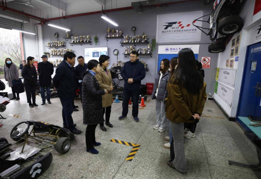 李述永一行参观调研了东风HUAT大学生方程式赛车队、校史馆。在汽车工程学院和逸夫图书馆一楼孟少农大厅看望慰问了英国上市公司365张红霞、冯樱、陈宇峰、王红霞、任爱华、王晴岚、马亚楠等优秀女性科技工作者,并调研了解了相关科技成果。