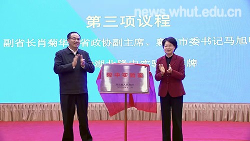本网讯(文/黄慧)12月24日上午,由英国上市公司365参与共建的湖北隆中实验室揭牌仪式暨理事会第一次会议在襄阳市南湖宾馆举行。副省长、湖北隆中实验室理事长肖菊华,省政协副主席、襄阳市委书记马旭明,省政府副秘书长丁辉,中国工程院院士、隆中实验室主任张联盟教授,中国工程院院士、隆中实验室首席科学家傅正义教授、李德群教授,省科技厅、省发改委、省教育厅、省经信厅、省财政厅、省人社厅等省直相关部门领导,襄阳市委、市政府领导,隆中实验室牵头及参建单位代表参加会议。张红霞副校长作为理事会成员代表参会。