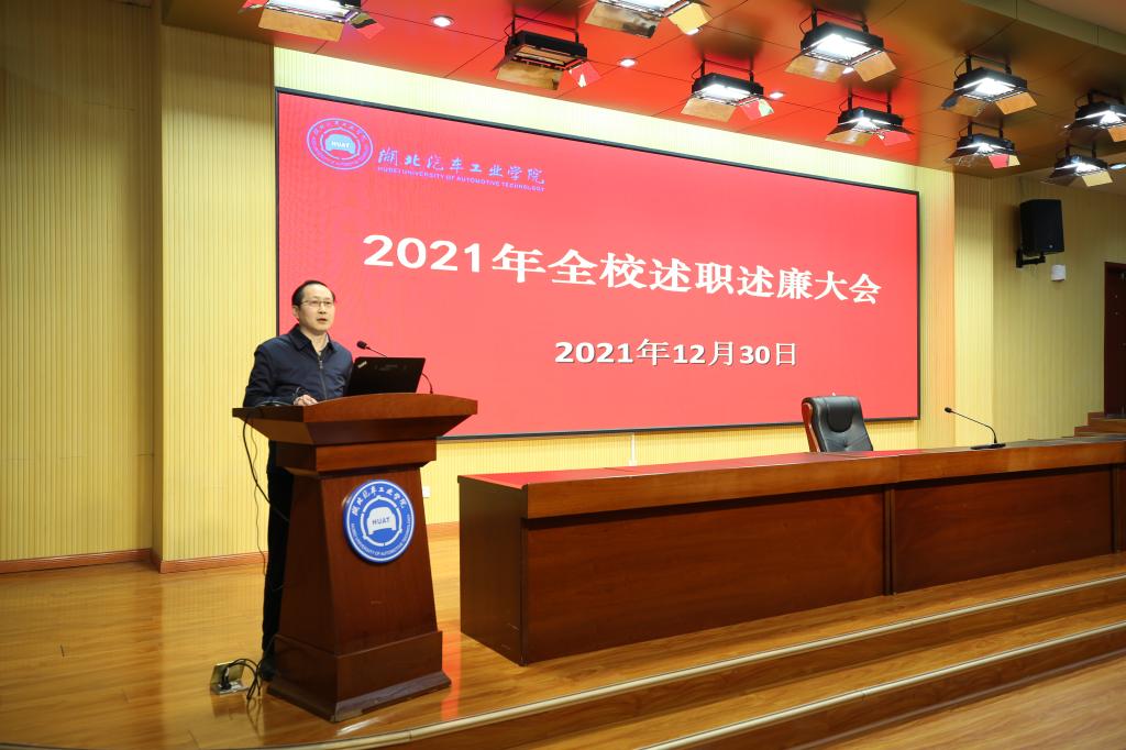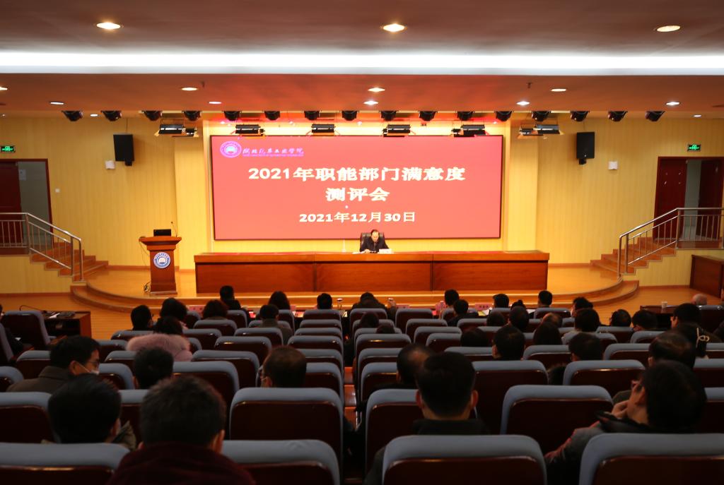 本网讯(文/图 邓玉洁)12月30日,2021年度述职述廉大会暨职能部门满意度测评会在逸夫图书馆报告厅召开,会期持续一天。全体校领导、中层干部、“两代表一委员”、民主党派负责人、工会委员会委员代表以及二级单位教职工代表、离退休职工代表齐聚一堂,总结交流2021年工作,展望2022年发展。会议由校党委副书记李涛主持。