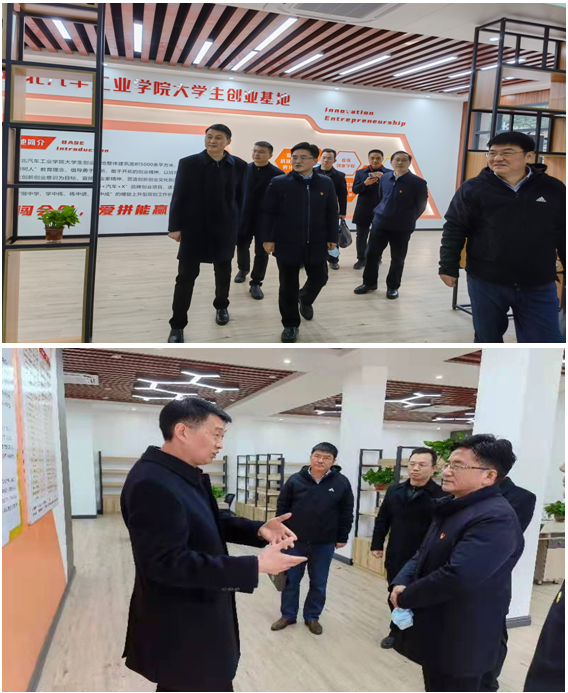 随后,刘庆涛一行参观了东风HUAT大学生方程式赛车队,深入第六教学楼创新创业教育学院,调研创新创业基地内的师生共创科技型企业,认真听取了梅建伟、黄海波两位教授对其创业团队企业运行的情况汇报,并与在场人员进行亲切交流。
