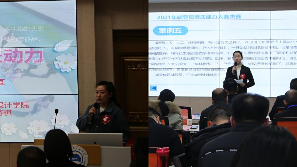 决赛分为案例分析、学情考察和育人故事分享三个环节。在案例分析环节,选手们围绕案例体现的问题本质、解决路径、实施方法及相关启示进行了细致的阐述。在学情考察环节,选手们根据屏幕上学生的照片,回答了自己所带学生的姓名、性格特点、获奖情况、奖助情况等信息。在育人故事分享环节,选手们介绍了自己与学生间发生的真实案例,展示了自己在大学生成长成才中的教育引领实效。