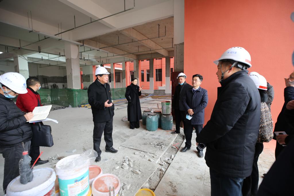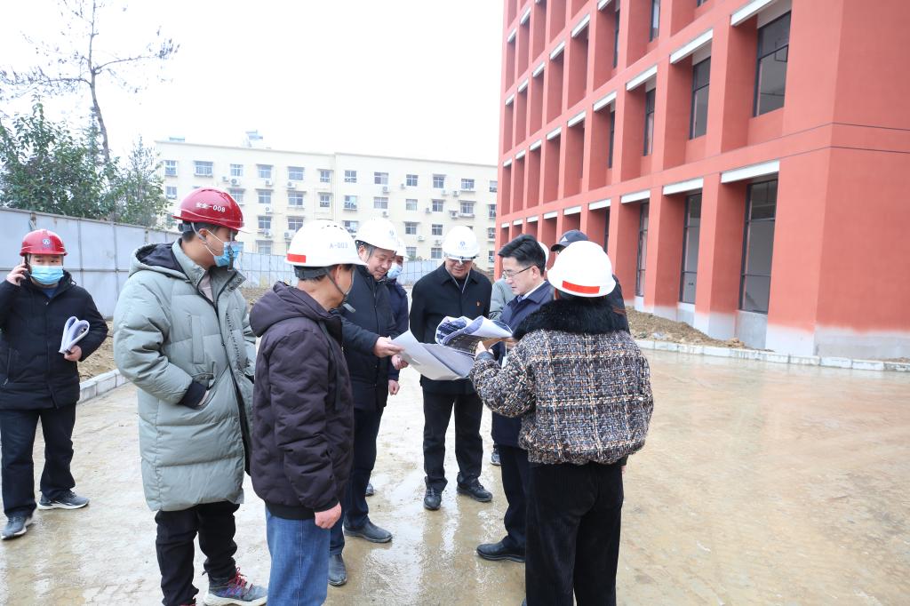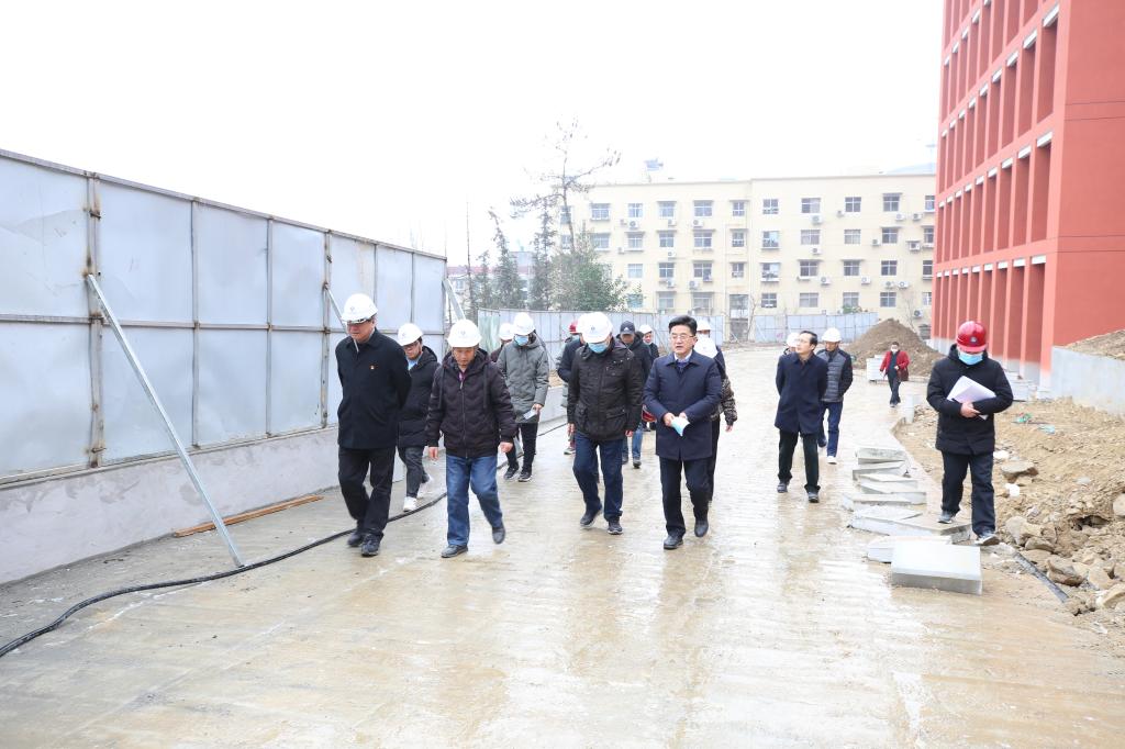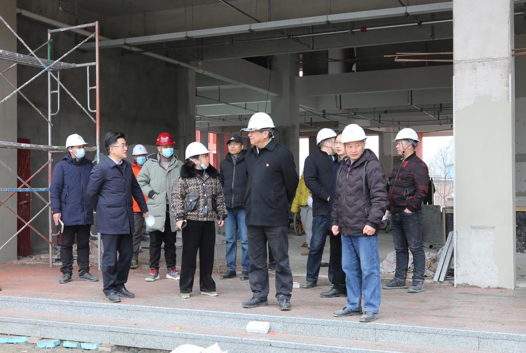 本网讯(文/图 邓玉洁)1月14日上午,校党委书记程红兵、校长张文学、党委副书记李涛、副校长张红霞、工会主席陈海峰一行携校办、宣传部、建管处、资产处、教务处、科技处等部门负责人及有关人员,实地视察学校汽车产业实验实训教学示范中心大楼建设情况。