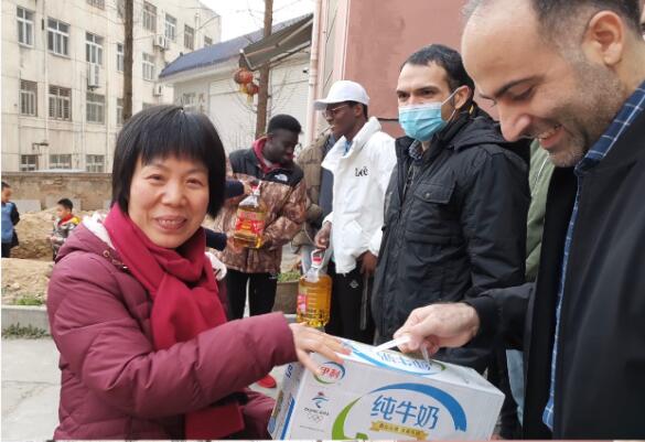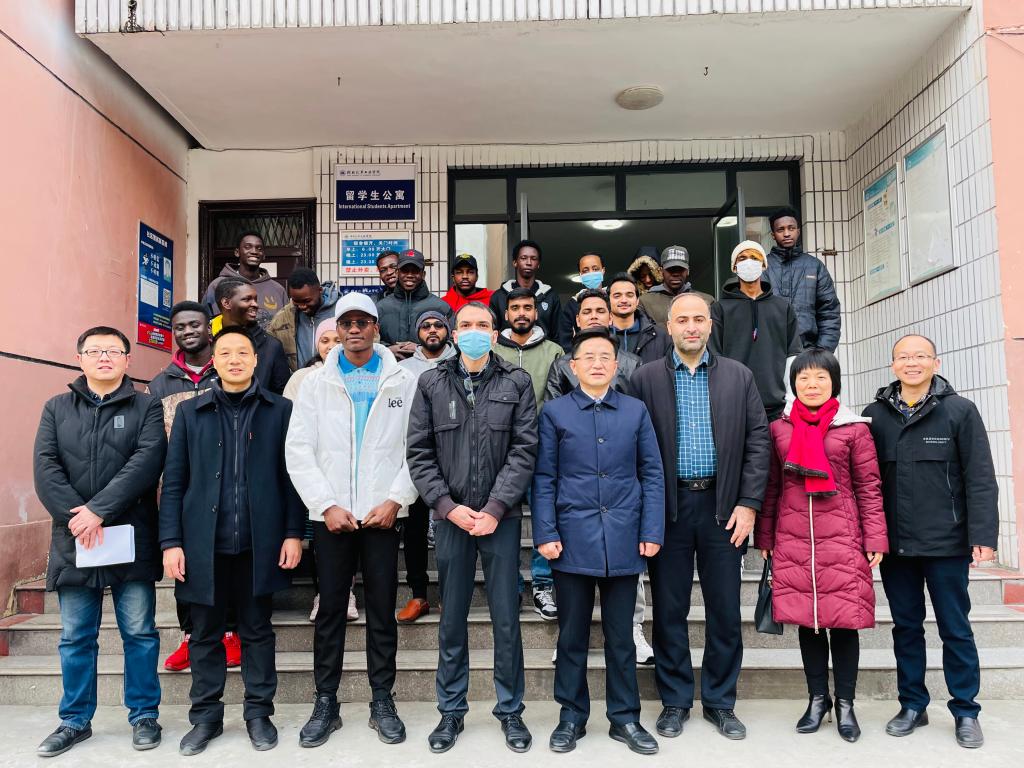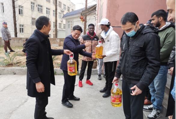 随后,校领导和国际处相关人员给外籍师生发放新年慰问品,并合影留念。
