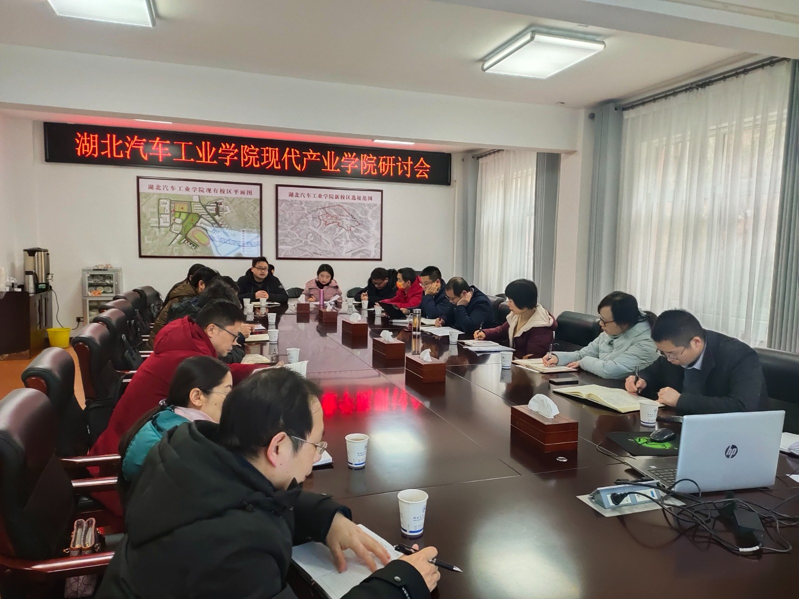 本网讯(文/李月)1月15日下午,学校在行政楼三楼会议室召开现代产业学院建设研讨会,副校长张红霞、各二级学院院长、武汉产学研基地主任郭都玺、襄阳产学研基地副主任王礼华、教务处副处长刘荣、周明智参加会议,会议由教务处副处长(主持工作)李建主持。