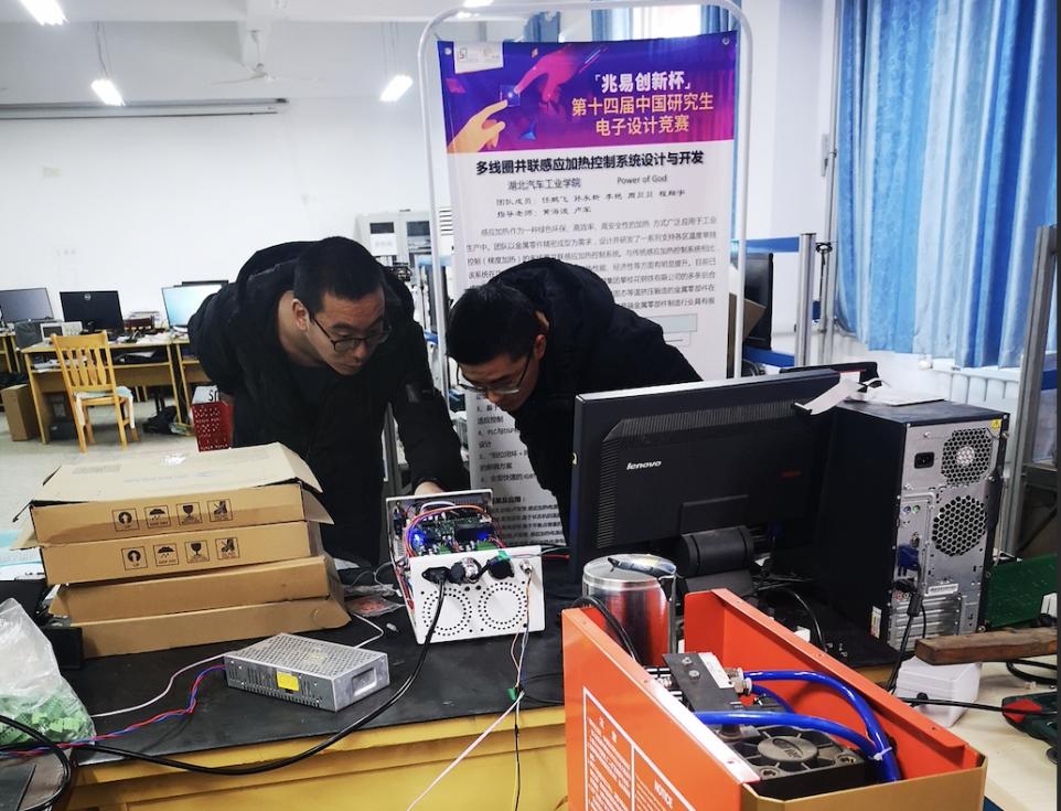 电院孙帆、隋纪祥两位青年教师正在进行项目调试