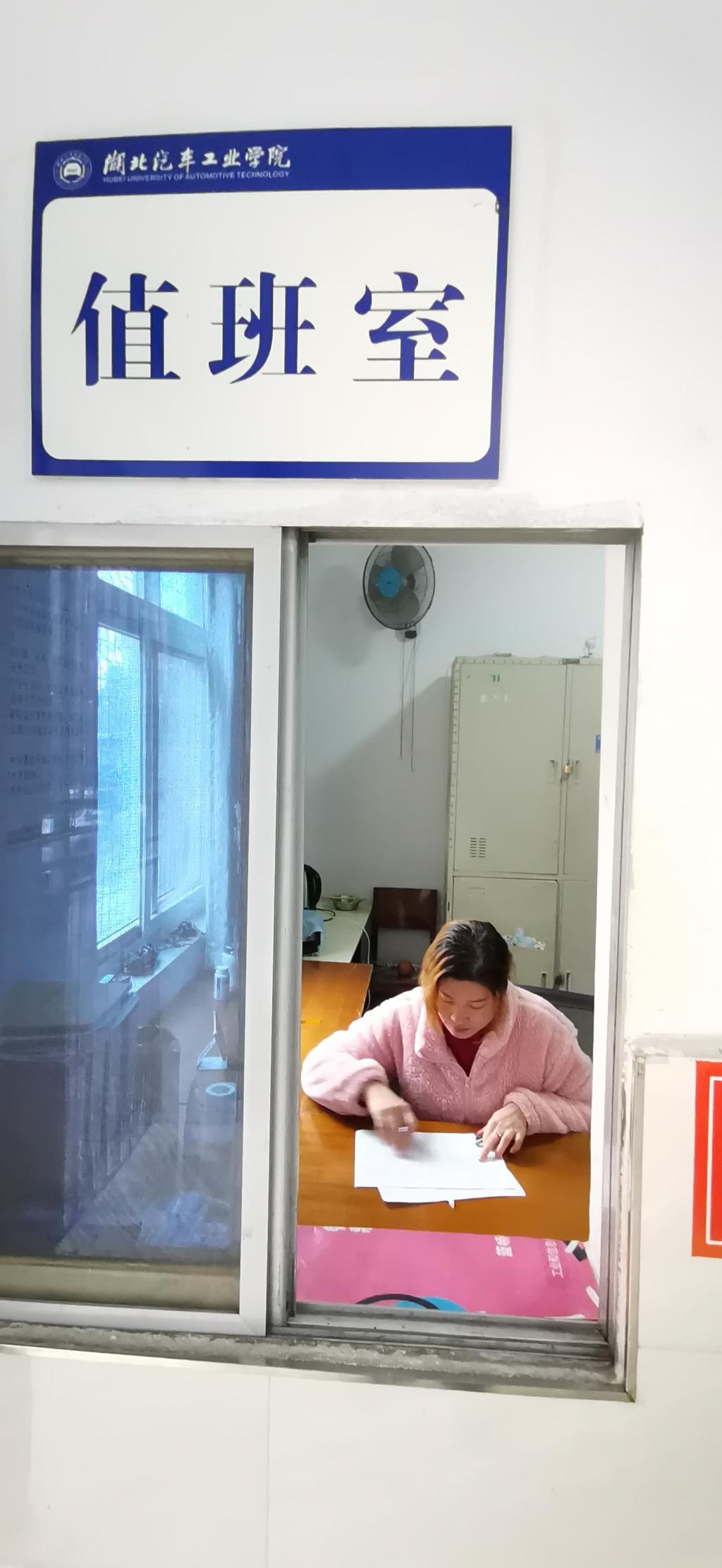 学生公寓值班员做登记工作
