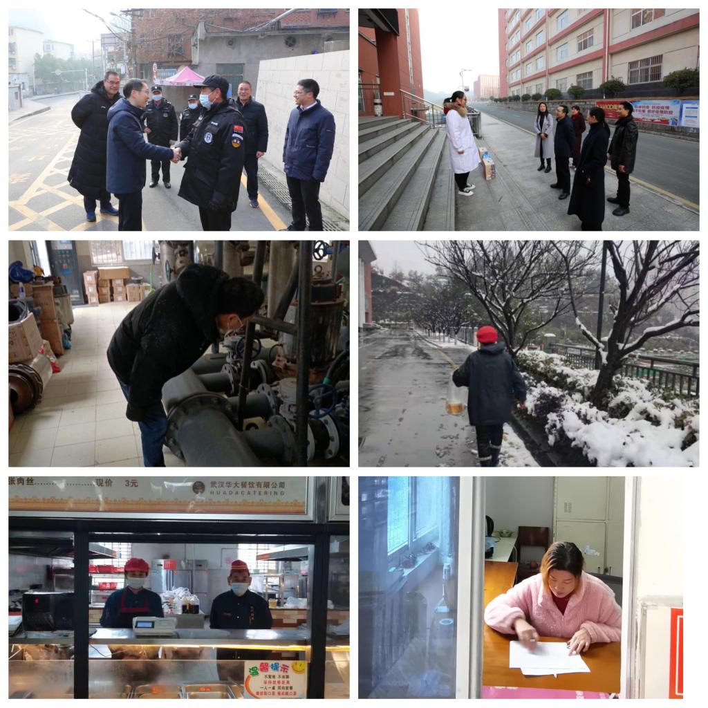 爱岗敬业的教职工们,数九寒冬,驻扎一线,大年初一仍不松懈,做好疫情防控、学生管理、后勤保障等工作。学校多次开展寒假期间校园安全检查、宿舍检查,慰问留校学生;开展网络施工,对故障率高的老旧光缆进行替换、重新熔接,提升校园网使用体验。暴雪天气,为确保广大师生员工生命财产安全和校园安全稳定,切实满足学习生活和工作需求,校领导亲临现场指挥工作,校办、校纪委、校园建设与管理处、保卫处、学工部、国际合作交流处等二级单位相关人员坚守岗位,冲锋在前,他们第一时间铲冰除雪,铺设草垫,确保师生出行安全;为留校学生送上生活物资,开通线上心理咨询;巡查水、电、气设备(管路),保障能源正常供给;确保食堂里随时供应热气腾腾的饭菜……值班室、保卫室、校医院、教学楼、宿舍楼、图书馆……正是这些散布在学校角角落落的身影,为校园安全稳定筑牢铜墙铁壁。