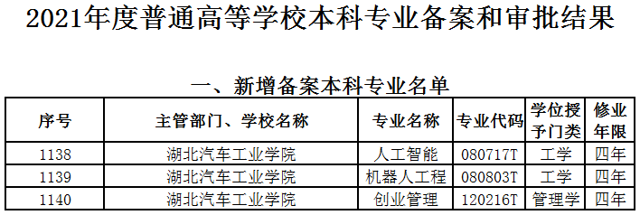 学校不断适应社会经济发展需要,立足自身发展和定位,优化专业设置结构,加强专业建设力度。此次3个新专业的获批,是学校在专业建设方面取得的新成果,是对学校长期以来在应用型人才培养方面所做努力的极大肯定。下一步,学校将发挥“东风HUAT智能汽车产业学院”(国家首批50所现代产业学院之一)引领作用,根据汽车产业转型升级和地方经济社会发展需求,不断调整和优化学科专业布局,联合企业申报部分新兴产业急需的专业,促进产教融合,培养高水平应用型人才,更好的服务“汉襄十随神”汽车产业集群建设,更好的服务地方经济社会发展。