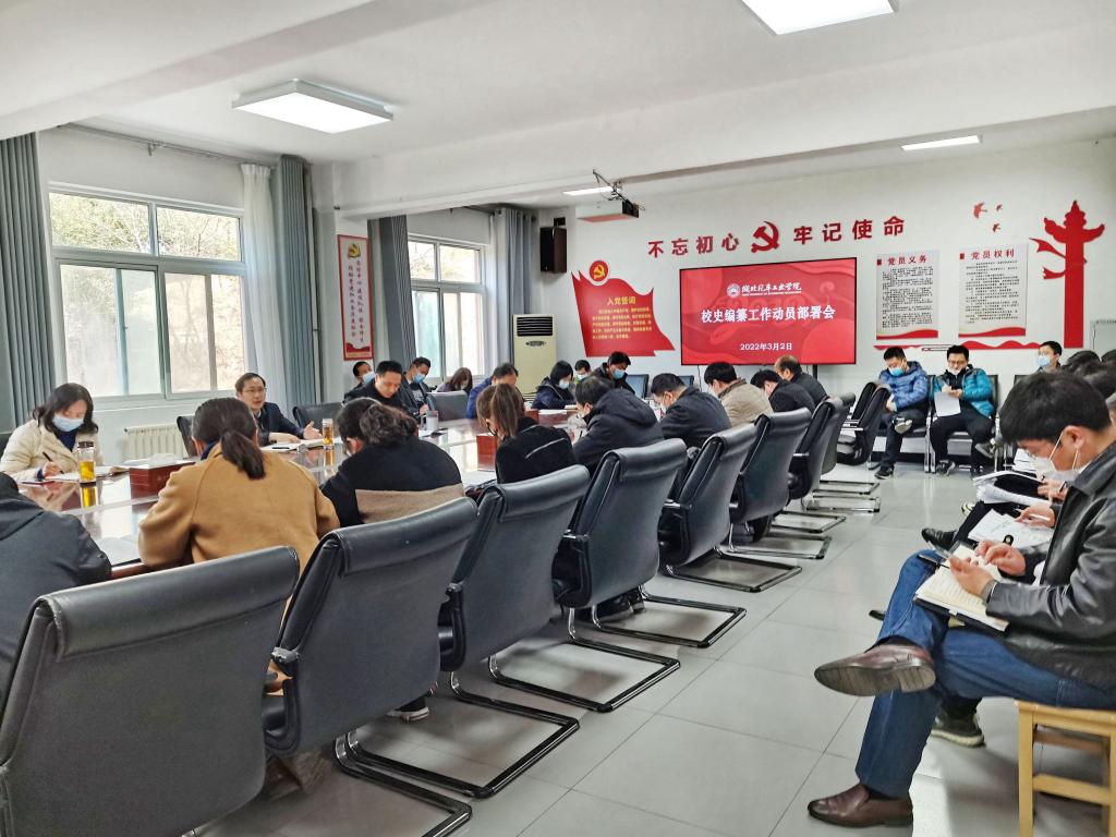 本网讯(文/图 广娟)按照学校庆祝建校50周年校庆方案要求和部署,3月2日下午,校史编纂工作启动部署会在行政楼六楼会议室召开,党委副书记李涛出席会议并讲话。党委常委、校(党)办主任、综合组组长王文山主持会议。校史编写组全体成员和二级单位校史撰写人参加了会议。