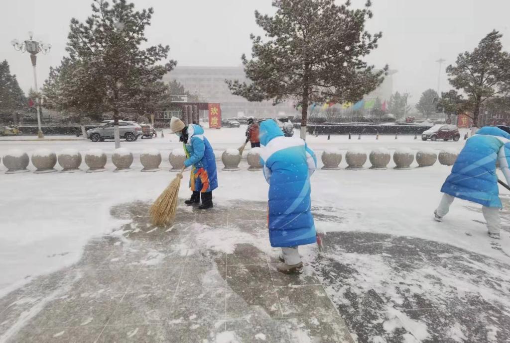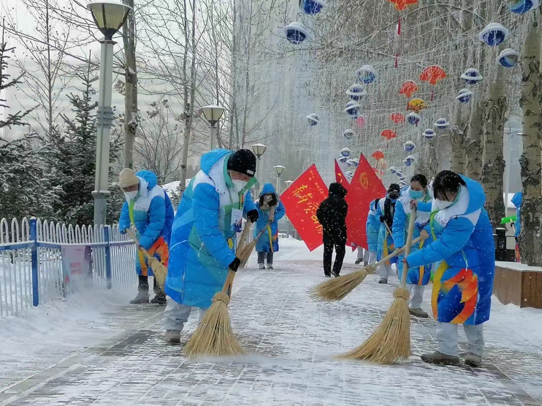 为了畅通全县人民的出行,我们常常要带上手套,拿好工具,一起铲雪除冰。在扫雪的过程中,我们还亲自动手堆了一个“雪墩墩”,让更多的人感受到浓厚的冬奥氛围。