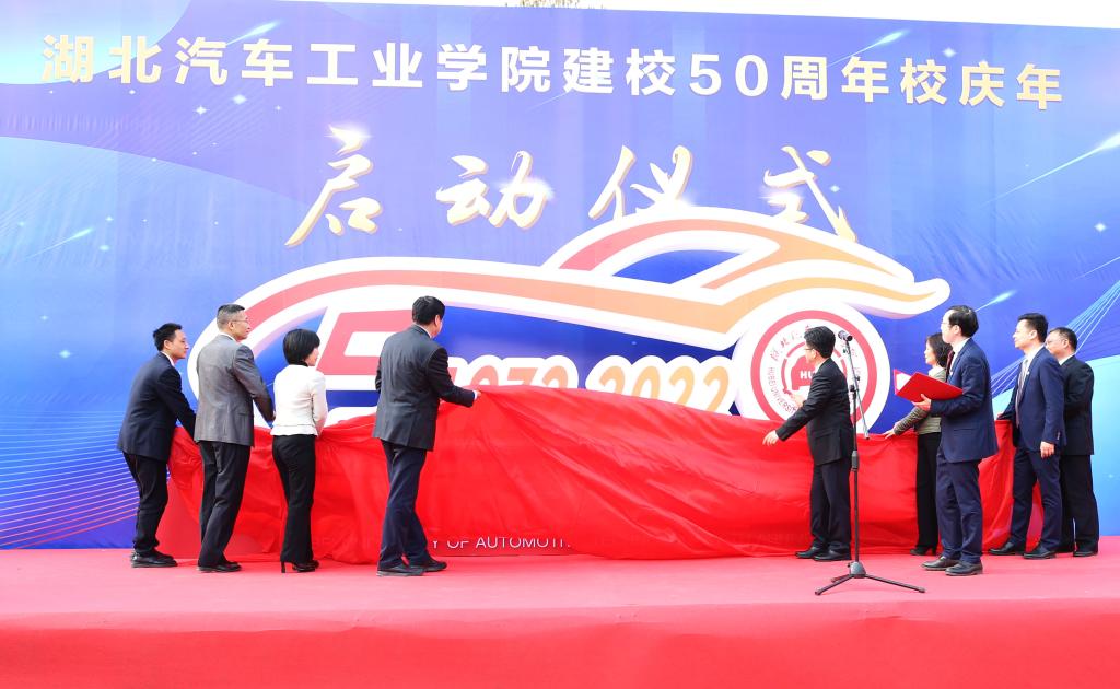 启动仪式上,全体校领导为学校50周年校庆的视觉形象标识揭幕。50周年校庆视觉形象标识主体以车为形,以红色为主基调,将汽院特色和50年光辉历程完美融合。