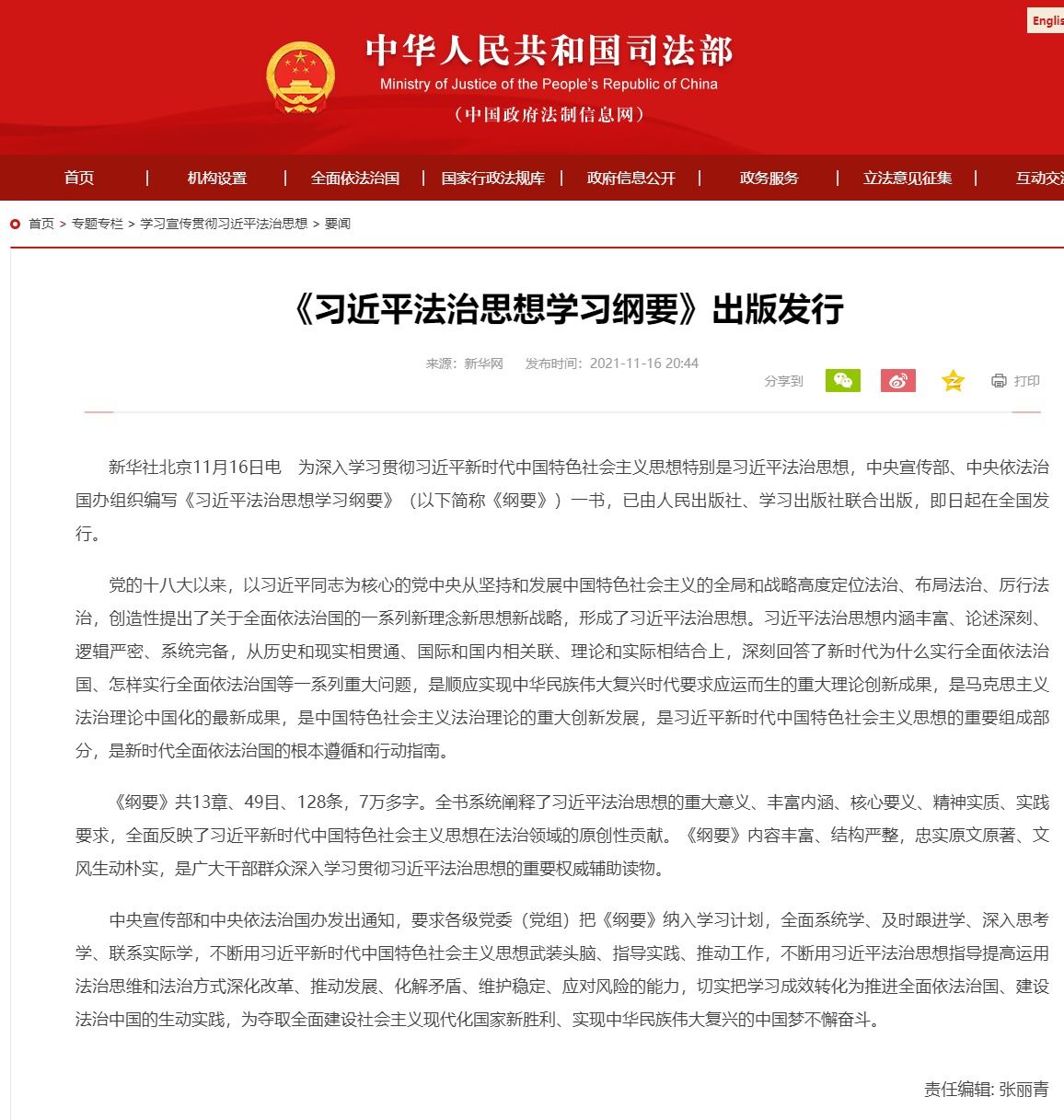 【中国政府法制信息网】《习近平法治思想学习纲要》出版发行
