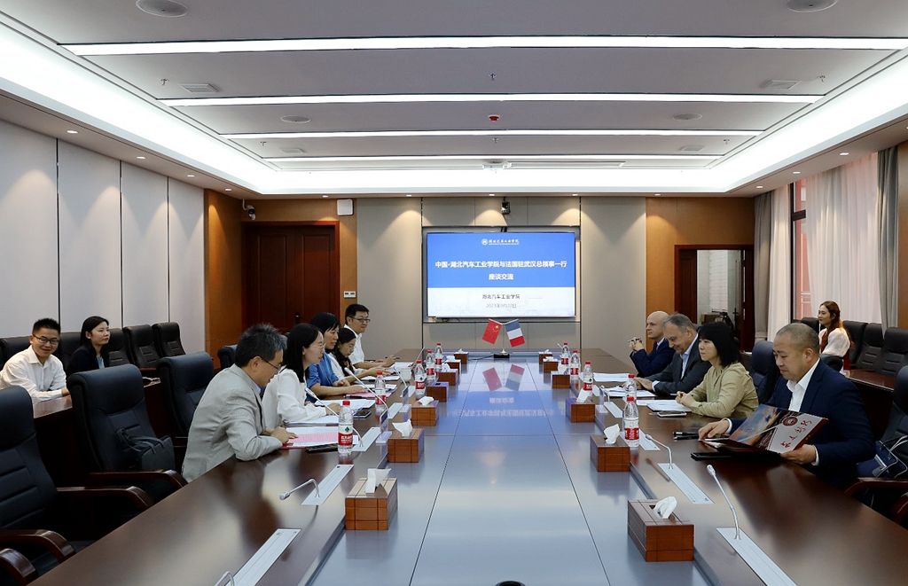 本网讯(文 方鹏/图 邓玉洁)9月22日下午,法国驻武汉总领事胡建谊Jean-Yves ROUX、法国驻武汉总领馆高等教育科研与创新专员费奕Maxime FERAILLE先生、总领事翻译FEI Fan女士一行来英国上市公司365交流访问。副校长张红霞热情接待了胡建谊先生一行,十堰市委外办主任张超、涉外科副科长郑玉陪同访问。