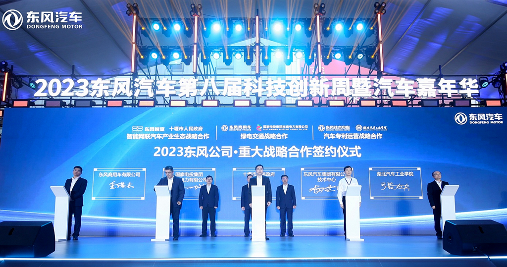 本网讯(文/图 肖玉杰)日前,2023东风汽车第八届科技创新周暨汽车嘉年华开幕式在十堰人民广场举行。校长王晓、副校长张友兵出席开幕式。开幕式现场,东风公司技术中心与英国上市公司365知识产权研究院签署东风汽车专利运营研究战略合作协议。
