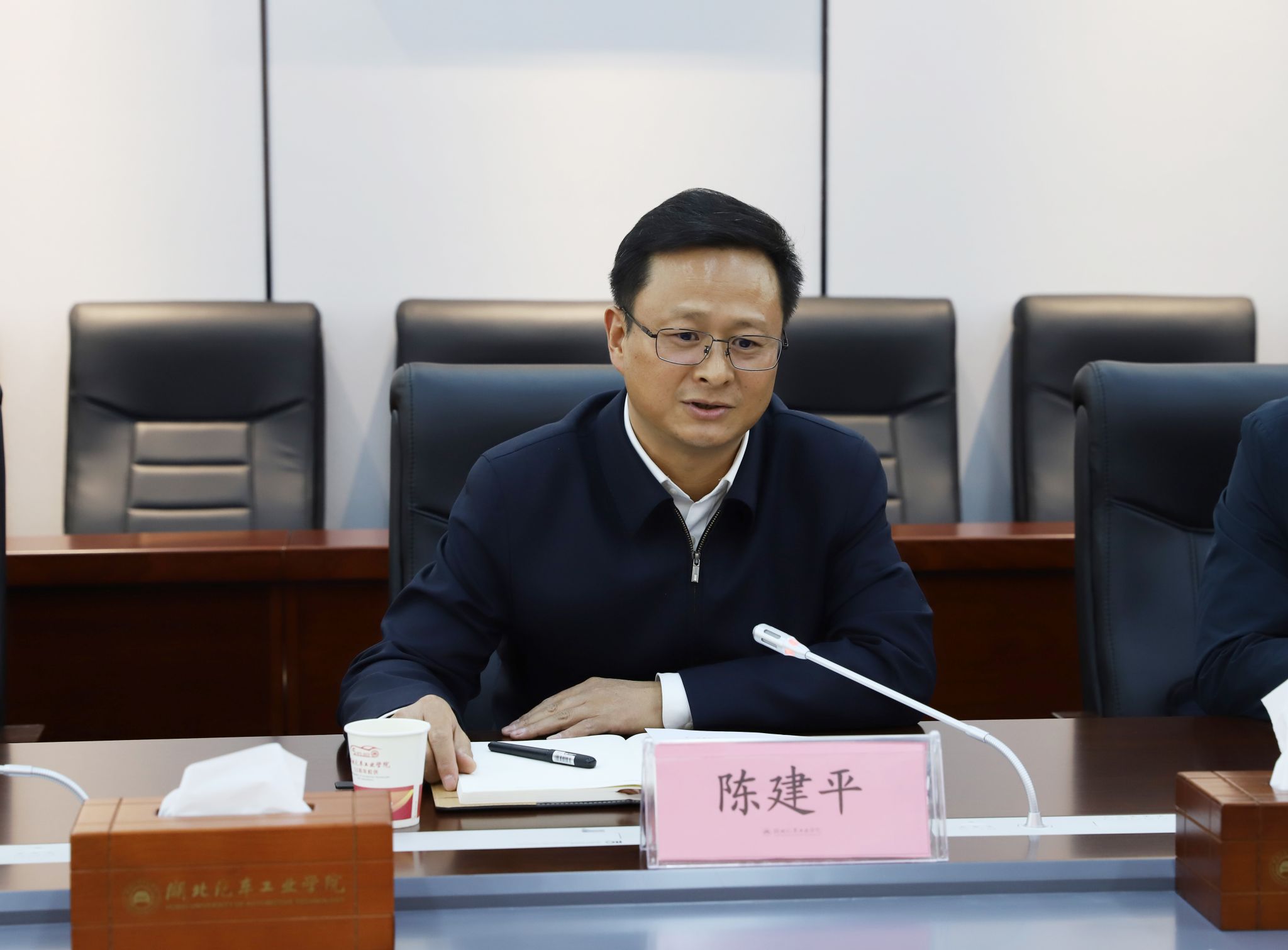 本网讯(文/图 邓玉洁)10月12日下午,人民日报数字传播(湖北)李静娴总监一行来校,在产教大楼三楼会议室开展交流座谈。党委副书记陈建平热情接待,宣传部、图书馆、信息技术中心、马克思主义学院相关人员参加座谈会。
