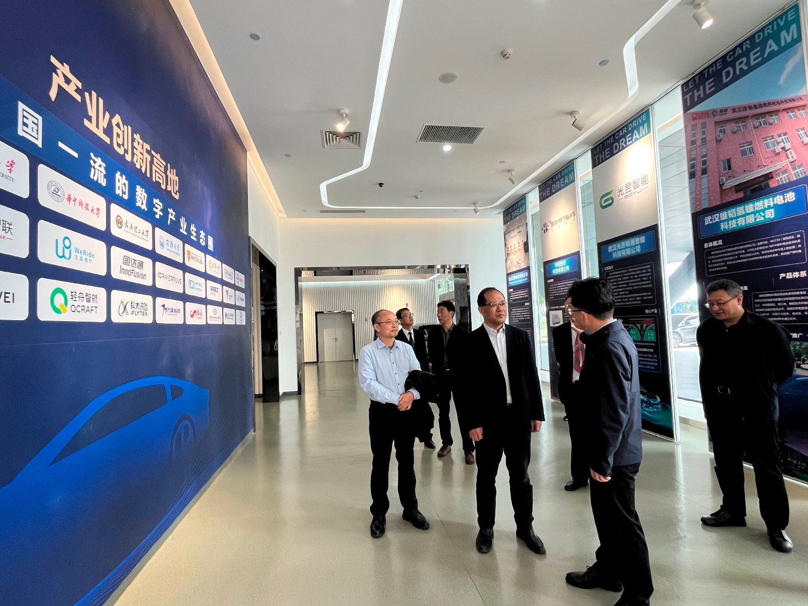 会前,张文学一行在经开区领导的陪同下,参观了国家智能网联汽车(武汉)测试示范区并试乘了无人驾驶快跑车。
