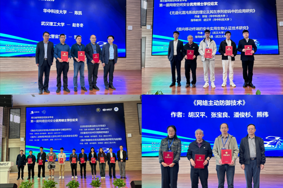 此次年会设置颁奖仪式、主报告会、嘉宾专题论坛、圆桌自由论坛等活动。颁奖仪式上,评选出了2023年度湖北省网络空间安全优秀教师、优秀专著以及优秀硕博论文。