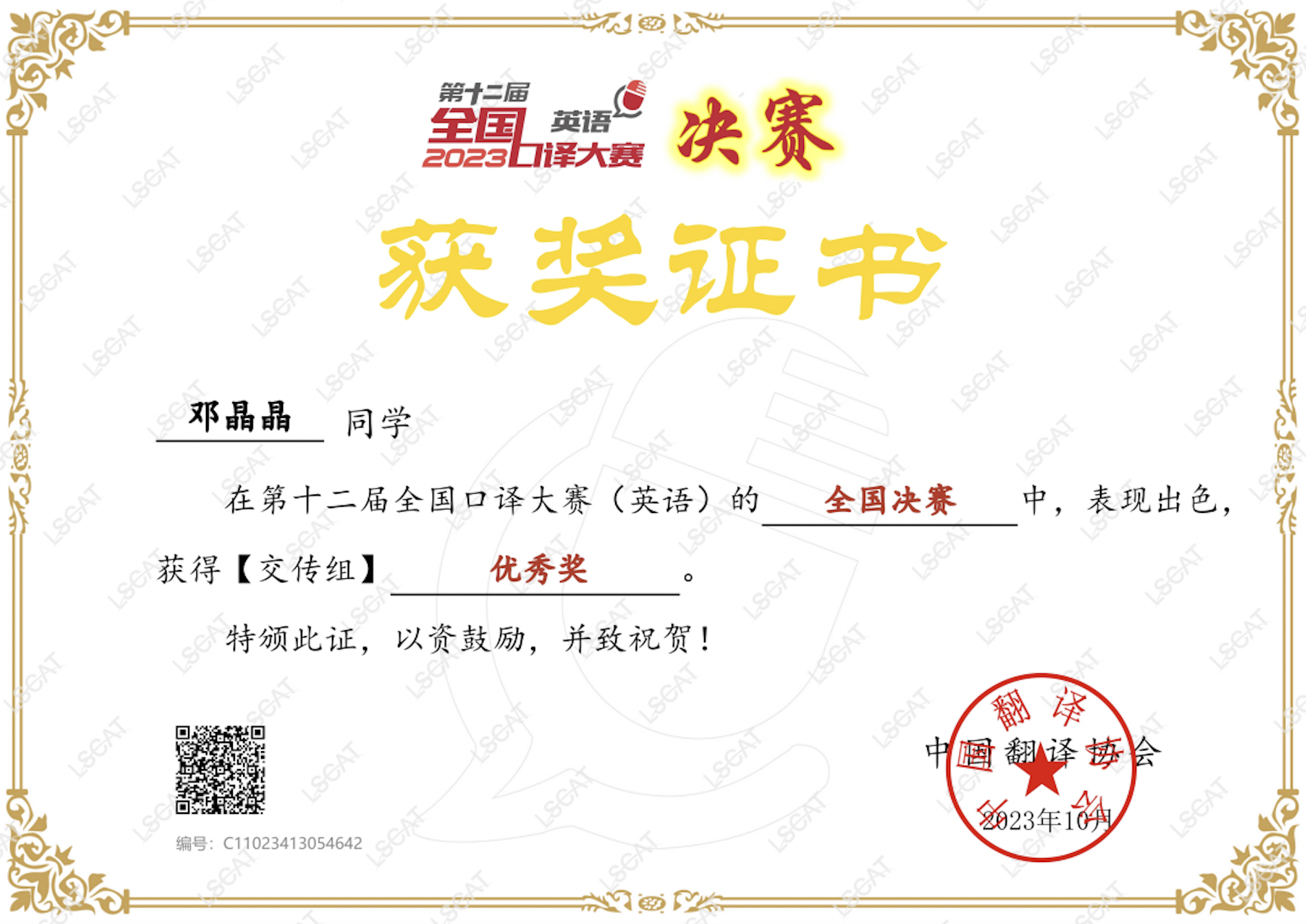 三位参赛选手历经校赛、湖北省复赛,最后均进入全国决赛。据悉,第十二届全国口译大赛从2023年4月持续到2023年12月,该赛事由中国外文局指导,中国翻译协会、当代中国与世界研究院主办,北京甲申同文翻译有限公司承办,是一项口译学习者在全国范围内同台竞技的高水平翻译大赛。