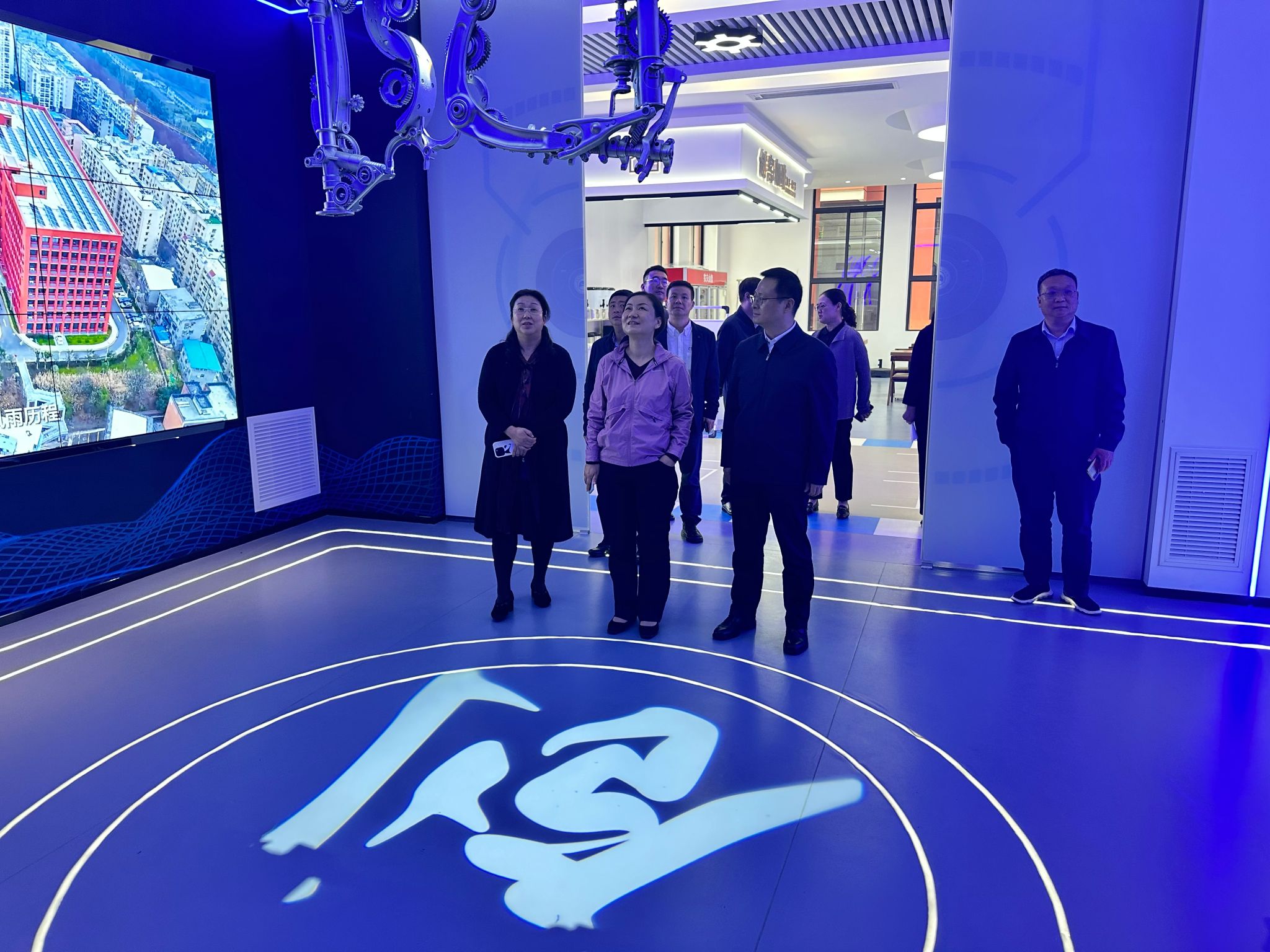 王慧萍一行参观了扩建校区、校史馆、科创展示交流中心和侨胞之家建设现场,详细了解了学校办学历史、与清华大学的渊源,以及学校科技创新成果。