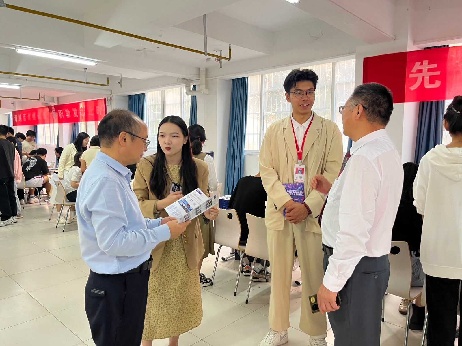 招聘会现场,张友兵与招聘单位工作人员亲切交流,详细了解企业需求、岗位设置及薪资待遇等情况。在与同学的交流中,张友兵鼓励大家要坚定信心、大胆展示自己、主动走出去,并叮嘱大家要抓住机遇、早就业、就好业。