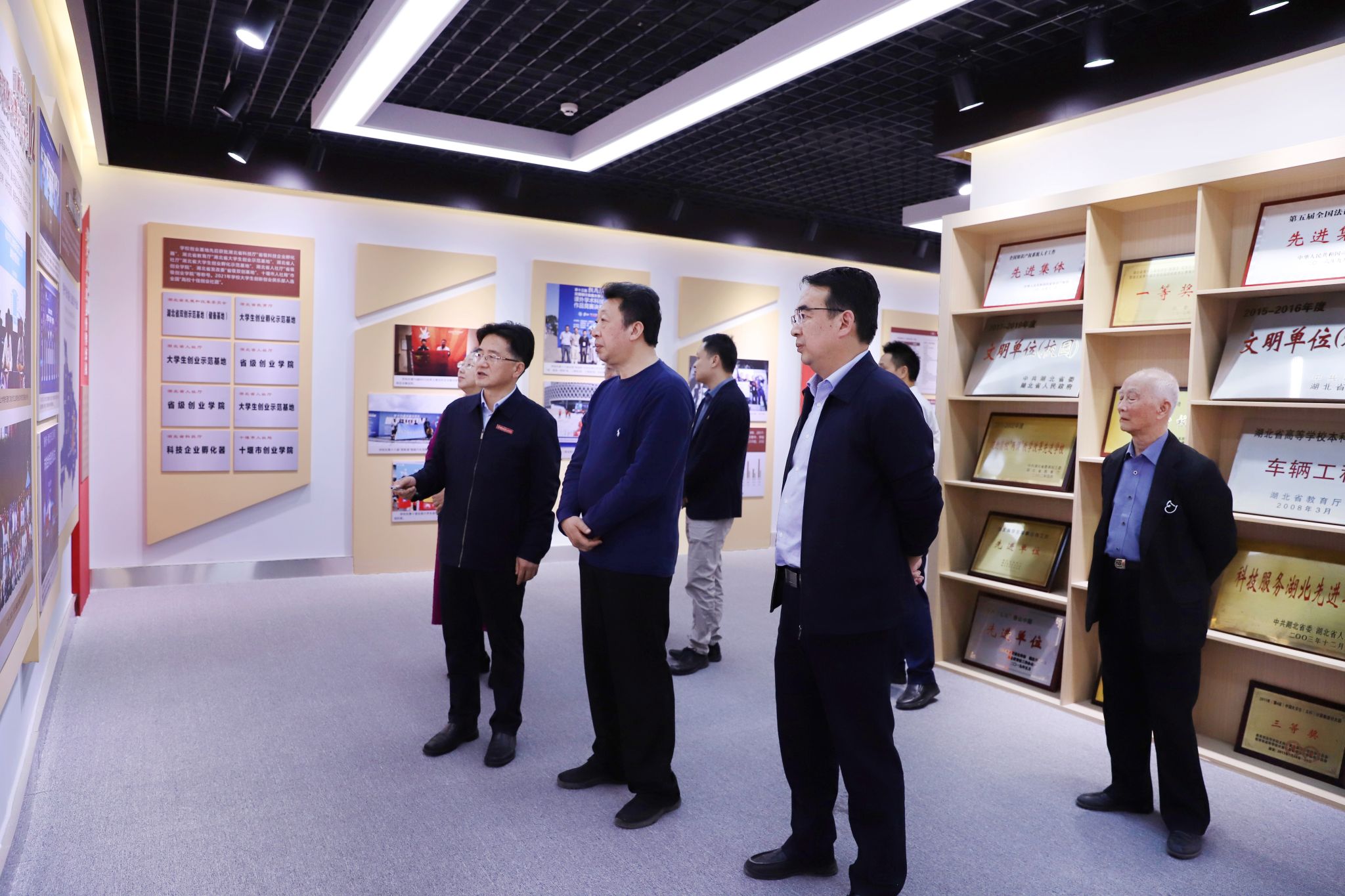 本网讯(文/图 广娟)11月1日下午,湖北省侨联党组书记、主席施政,十堰市侨联主席林华一行来校调研。校党委书记张文学,校长王晓,党委副书记陈建平,副校长高刃,党委常委、组织部部长王镇,党委常委、党政办主任王文山陪同调研。