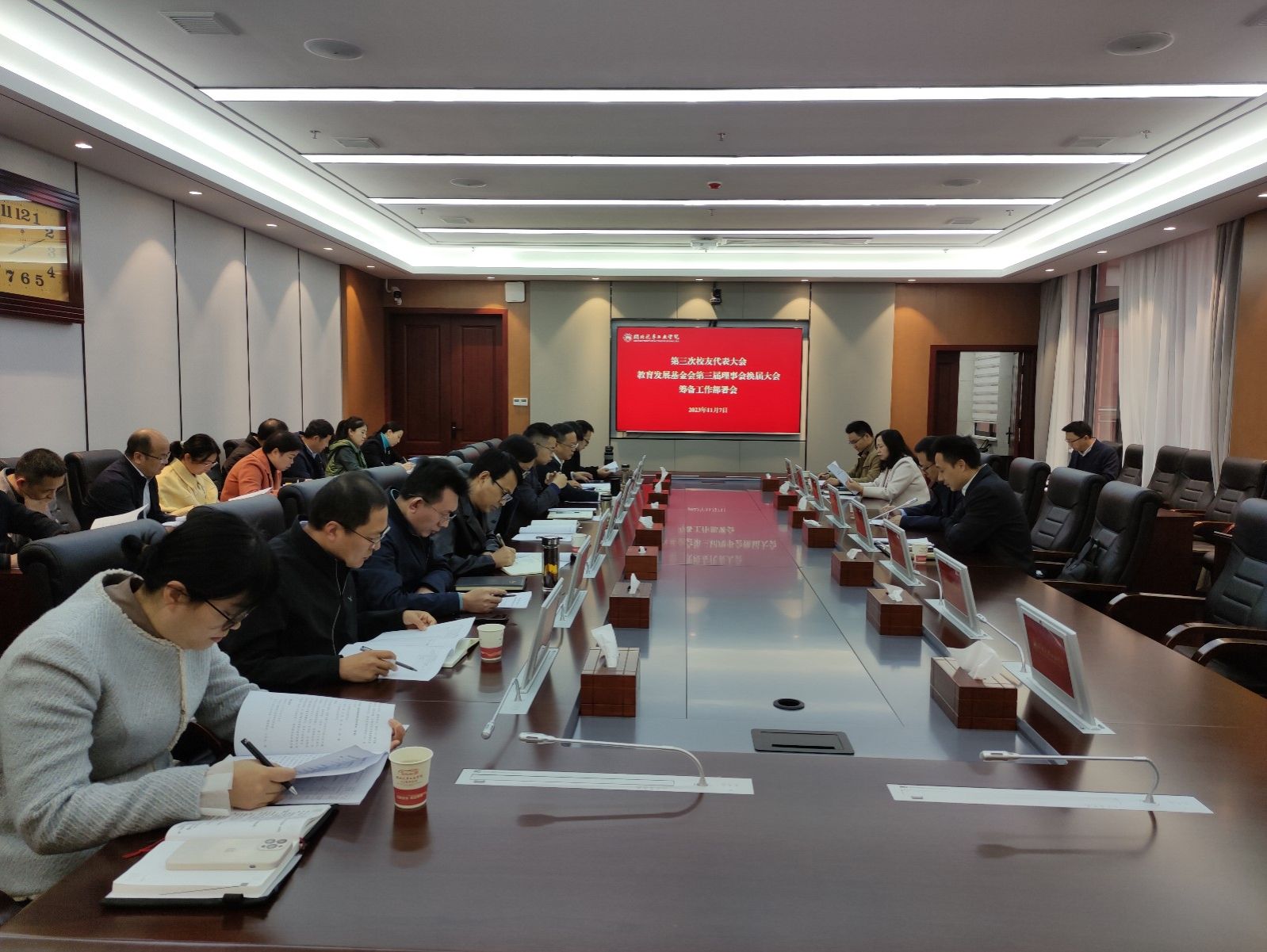 本网讯(文/图 徐跃廷)11月7日上午,学校第三次校友代表大会、教育发展基金会第三届理事会换届大会筹备工作部署会在产教大楼三楼多功能会议室召开。校党委副书记陈建平,各相关二级单位主要负责人参加会议。党委常委、党政办主任王文山主持会议。