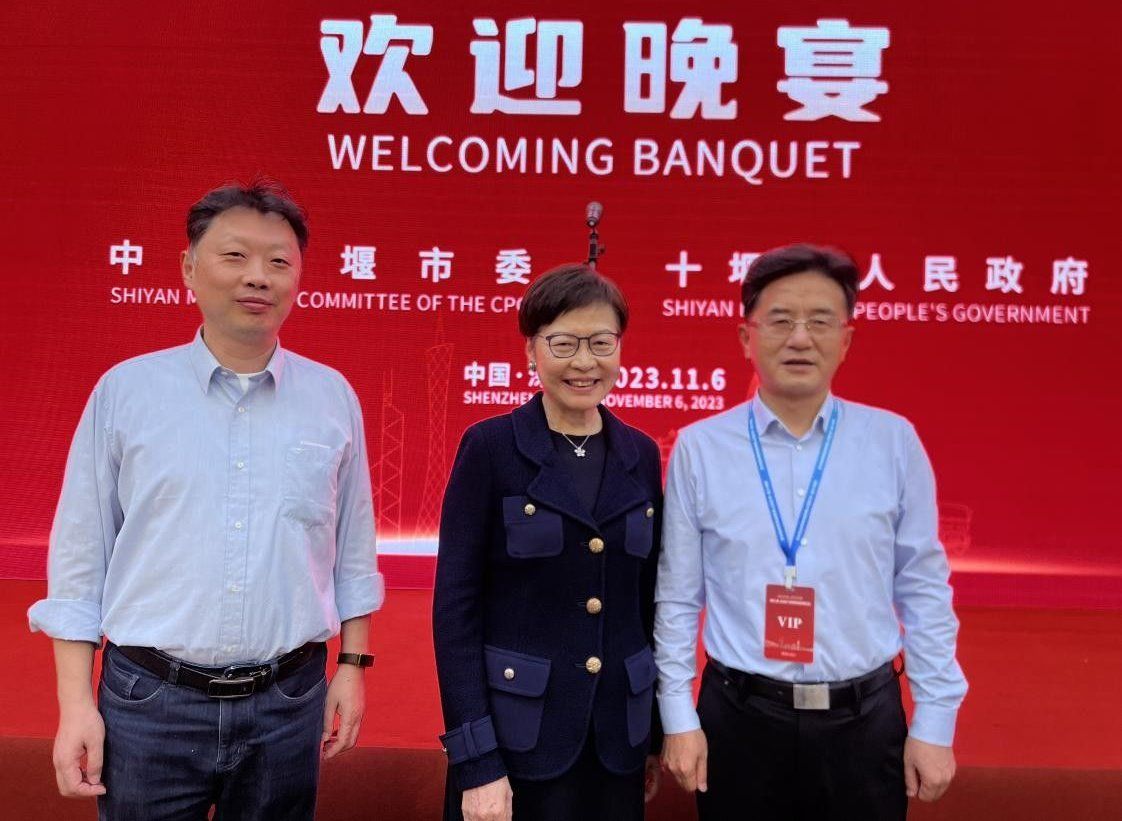 本网讯(文/图 原刃锋、赵氏旋)11月6日至7日,由十堰市人民政府与湖北省商务厅共同主办的湖北十堰-大湾区产业链供应链对接大会在广东省深圳市举行。第十届全国政协常委、深圳市委原书记厉有为,中央政府驻澳门联络办公室原副主任姚坚,深圳市政协原副主席、广东省粤港澳大湾区战略性新兴产业发展促进会名誉会长李连和,东风汽车有限公司党委书记王强等出席大会。十堰市市委书记黄剑雄致欢迎辞,市委副书记、市长王永辉主持对接会。校党委书记张文学携深圳校友会代表、广东校友会代表受邀参加大会。