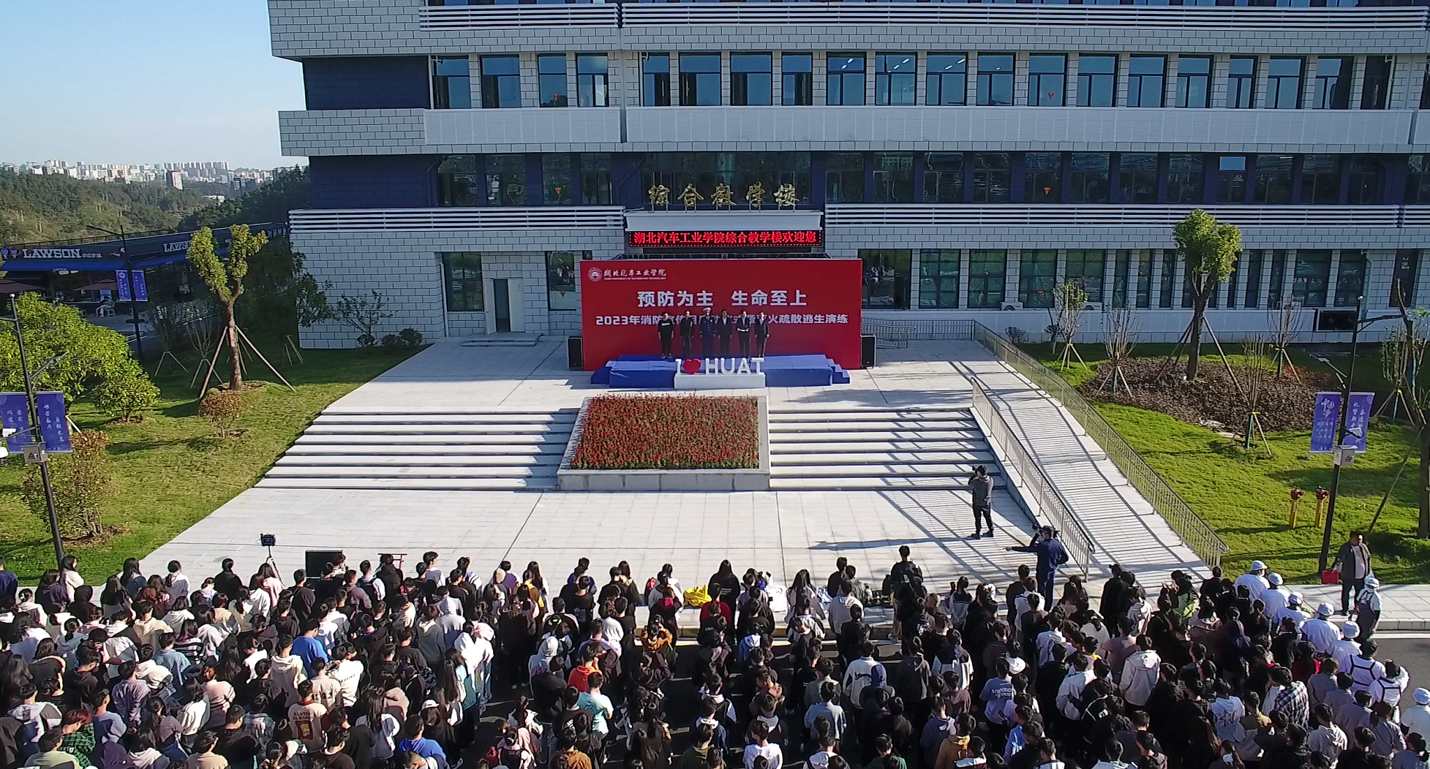 本网讯(文/图 薛树森)为加强学校消防安全管理,提高全校师生的安全意识,确保师生生命安全,围绕2023年消防安全月“预防为主,生命至上”主题,11月6日下午,保卫处、学工部联合张湾区消防救援大队,在扩建校区综合教学楼、梅园学生公寓组织开展2023年消防宣传月启动仪式暨灭火疏散逃生演练活动。校党委常委、党政办主任王文山,张湾区消防救援大队大队长裴刚参加此次演练。活动由保卫处处长杨长春主持。