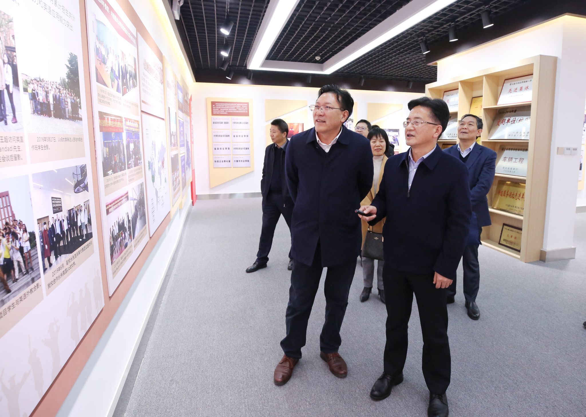 王文森一行参观了学校北区(扩建校区)、校史馆、科技创新展示中心,深入了解了学校在人才培养、科技创新、产学研用合作等方面办学特色和办学成绩。学校领导简要介绍了学校的发展历程、办学特色、新校区规划和“三步走”发展战略!