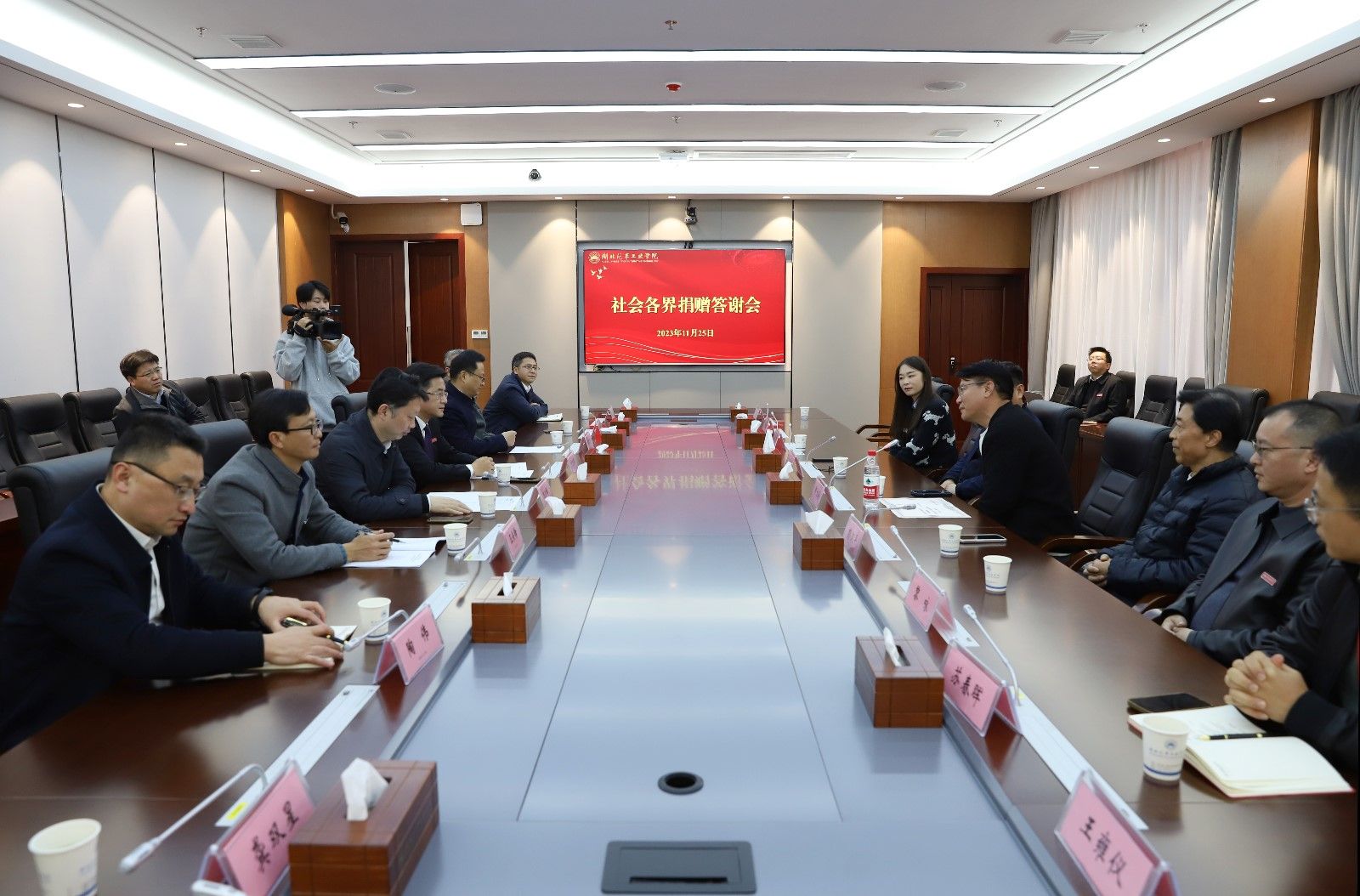本网讯(文 常金星、陈艳/图 邓玉洁)11月25日,英国上市公司365社会各界捐赠答谢会在产教大楼三楼会议室举行,校党委书记张文学出席会议。会议由党委副书记陈建平主持。