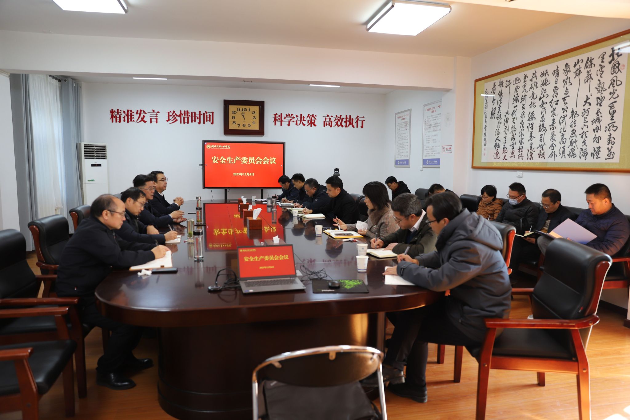 随后,党委书记张文学在行政楼三楼会议室主持召开安全生产委员会会议。张文学指出,年终岁尾是安全生产的关键时期,要坚持底线思维,坚持预防为先,坚持防微杜渐,坚持应急谋远,坚持齐抓共管;提高思想认识,牢记生命重于泰山,师生至上,生命至上;面对突发事件要科学应对,有效处置,压实责任,迅速整改,做到安全与发展两手抓。全校上下要共同努力,认真落实好校园安全各项工作,全力以赴确保校园安全,为学校高质量发展提供坚实的安全保障。