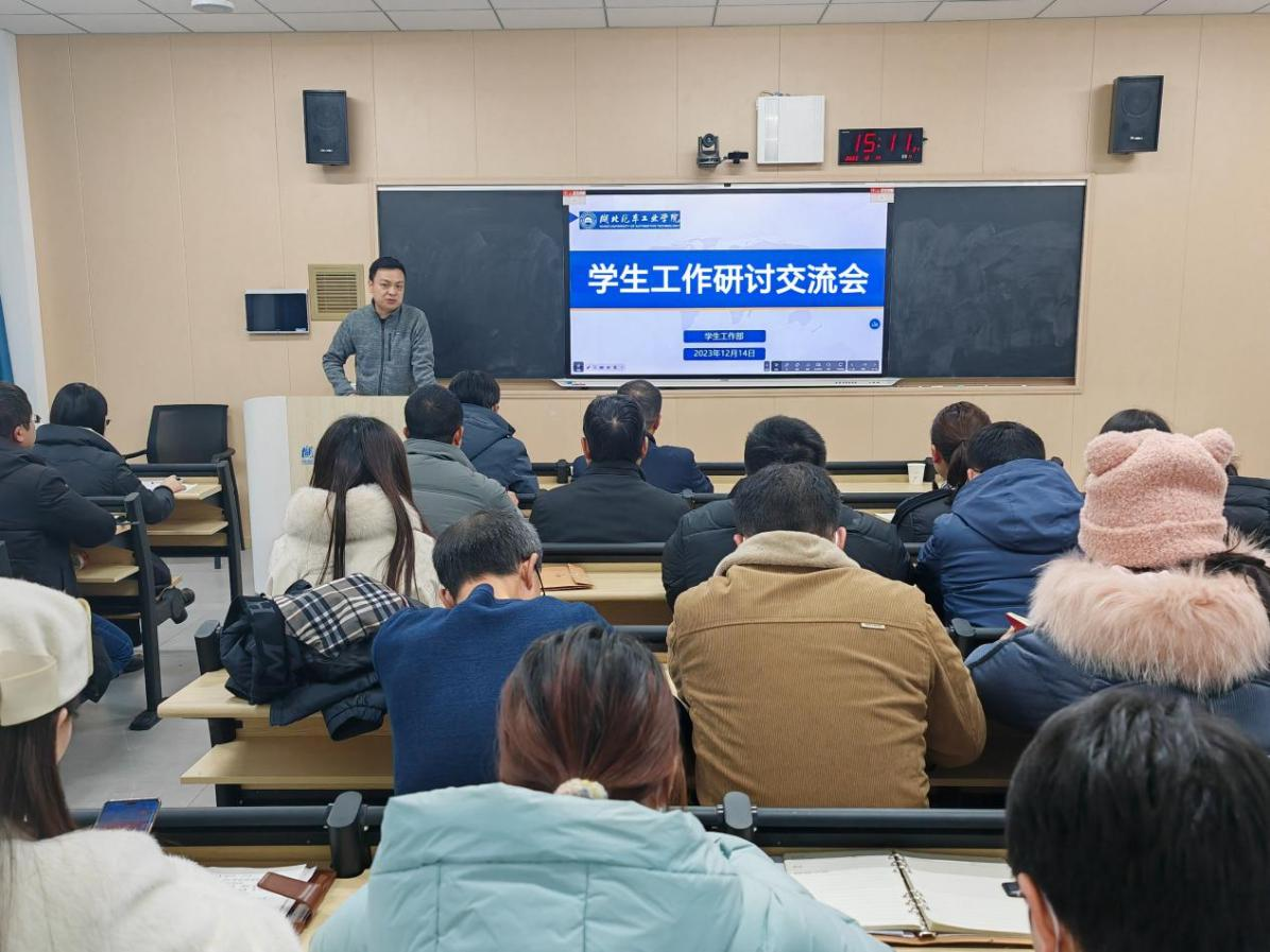 王关锋通报了近期学生工作重点指标数据,从各二级学院考研报考率、阳光健康跑参与率、周日晚点名、心理健康等方面分析了目前学生工作存在的问题及学期末工作重点。他强调,学工队伍要从学校立德树人根本任务的高度整体谋划工作,用心用情用力解决学生诉求,让学生感到暖心安心;要着眼细节,提高应急处突能力,完善应急预案并及时复盘,并统筹做好期末考试周的各项工作。