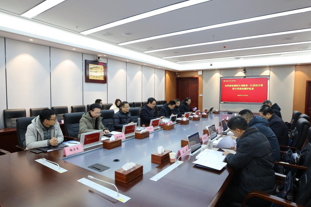本网讯(文 朱晗誉/图 李一凡)12月19日,受湖北省档案局委托,省档案馆副馆长刘晓春、湖北省档案馆科技信息处副处长严若垒、宜昌市档案馆副馆长谌志黔、孝感市档案馆副馆长樊志勇、湖北大学教授王艳明一行来校,对全省示范数字档案馆进行测评。十堰市档案馆馆长丁清华、二级调研员陶维平、电子信息科科长刘杨陪同参与。校长王晓,党委常委、党政办王文山参与了测评。