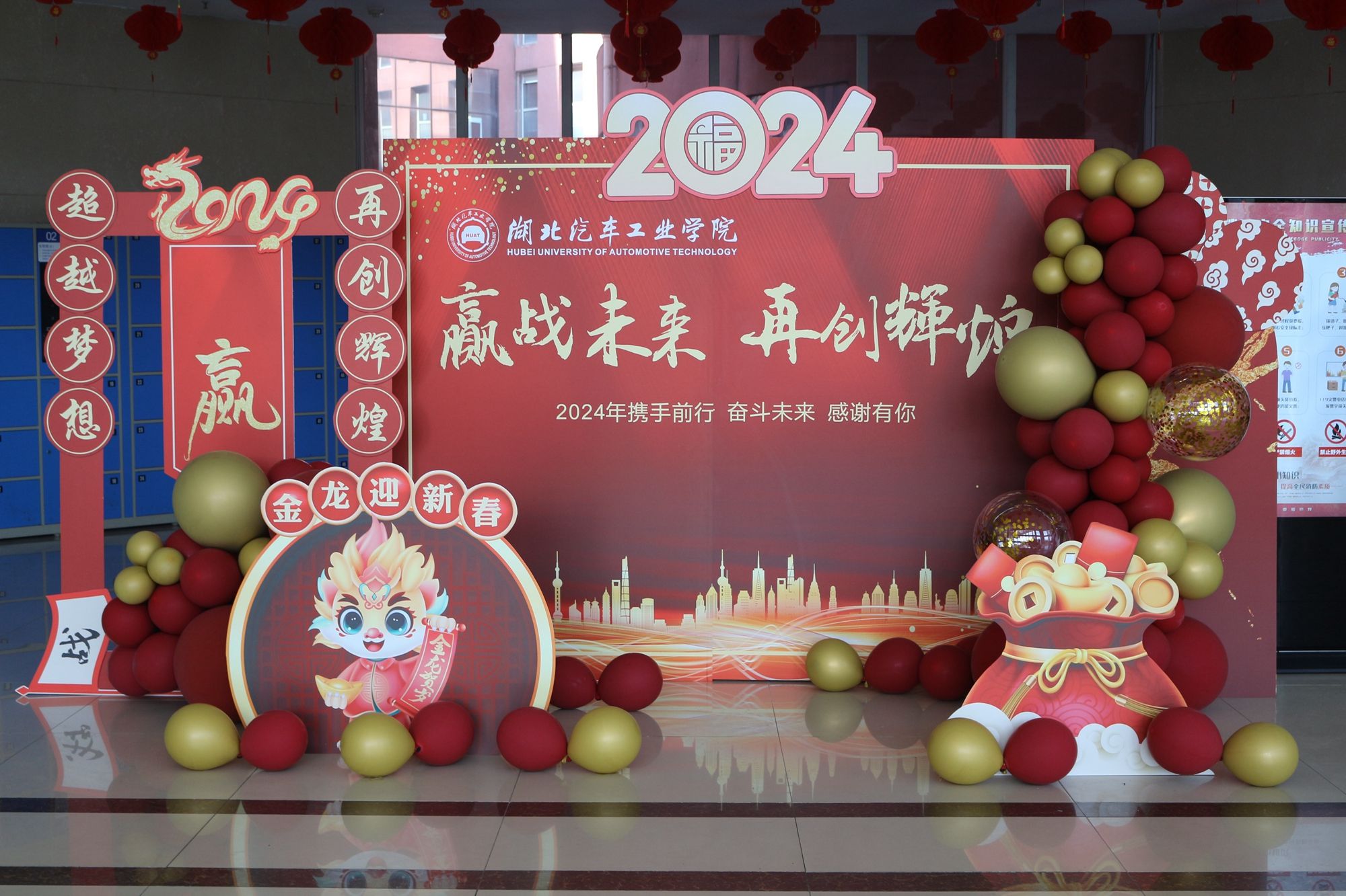 汽车文化广场喷涌的泉水、金龙造型的文化展板、校门高悬的大红灯笼,点染了汽院的节日氛围,点亮了汽院欣欣向荣的崭新风貌,点燃了学校朝气蓬勃的梦想新篇。