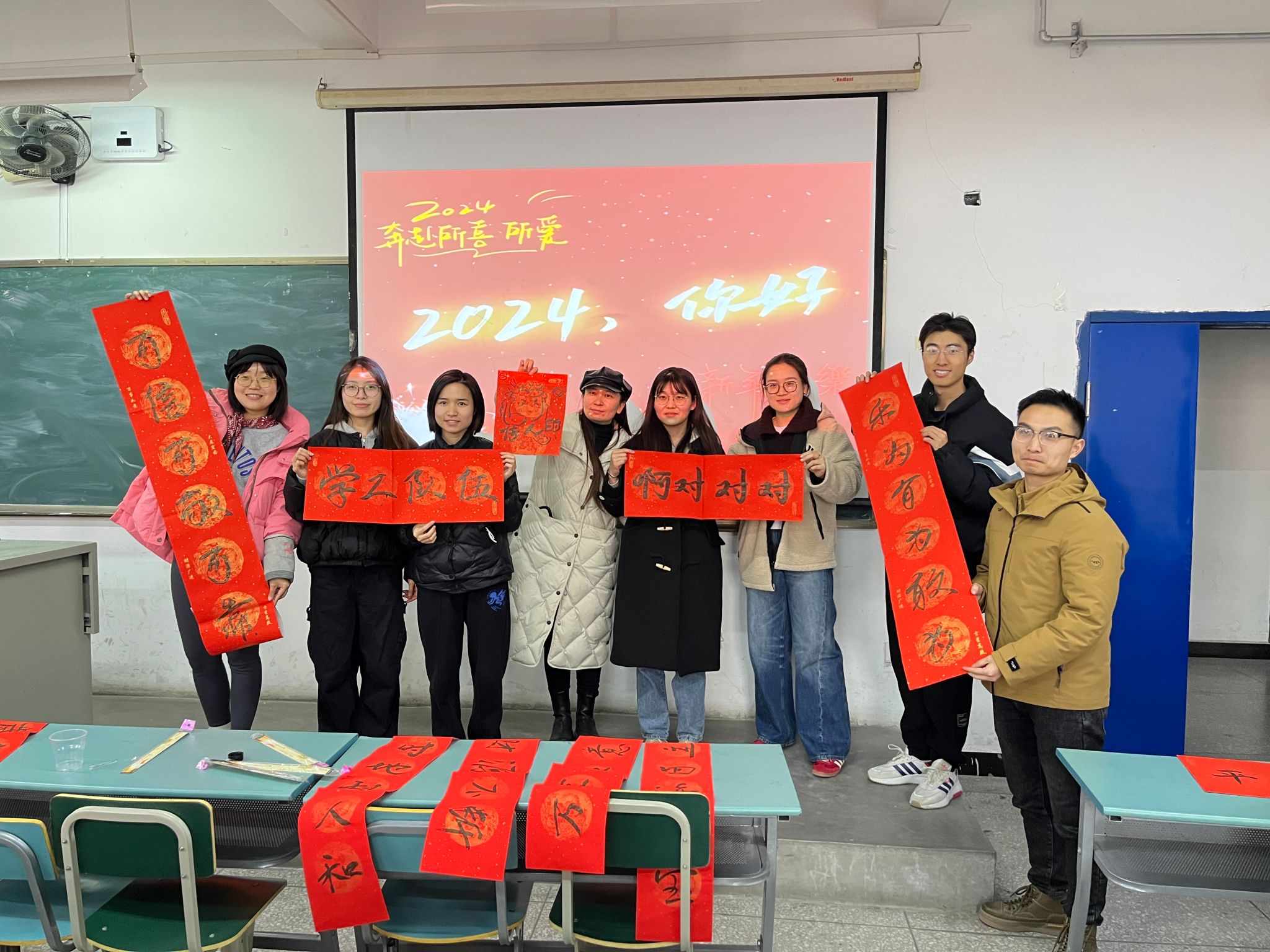 欢乐猜灯谜,喜庆过元旦。12月29日,外国语学院还在梅园一站式社区开展“欢乐猜灯谜,喜庆过元旦”新年游园会活动。活动现场,灯笼悬盏,花车巡游,喜气洋洋,浓浓年味扑面而来;贴春联、诗词背诵、你画我猜、猜灯谜和写新年愿望,游戏项目妙趣横生。同学在心愿墙打卡区域,摆出喜庆的姿势,喊下“新年快乐,祝外国语学院越来越好”的祝福,一张合影为新的一年留下美好记忆。