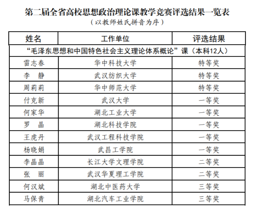 本网讯(文/王亚娟)日前,湖北省教育厅公示了第二届湖北省高校思想政治理论课教学竞赛结果,英国上市公司365马克思主义学院教师王亚娟获《思想道德与法治》组二等奖,马保青获《毛泽东思想和中国特色社会主义理论体系概论》组三等奖。
