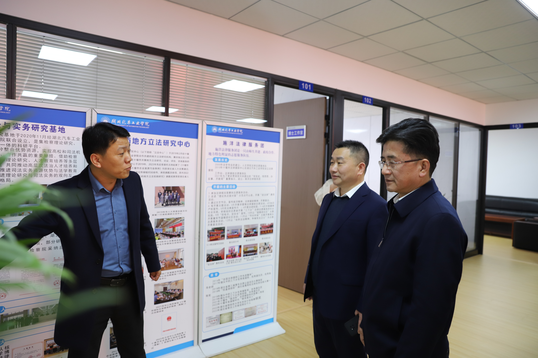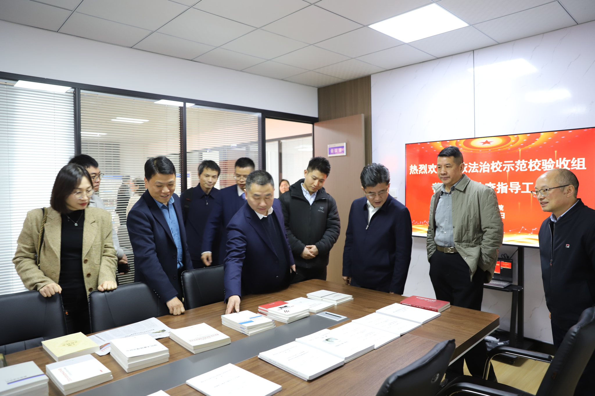汇报会后,专家组查看了学校依法治校示范校创建支撑材料,与校领导、部门负责人及师生代表进行了访谈,并实地查看学校法治文化长廊、知识产权学院等法治文化阵地。