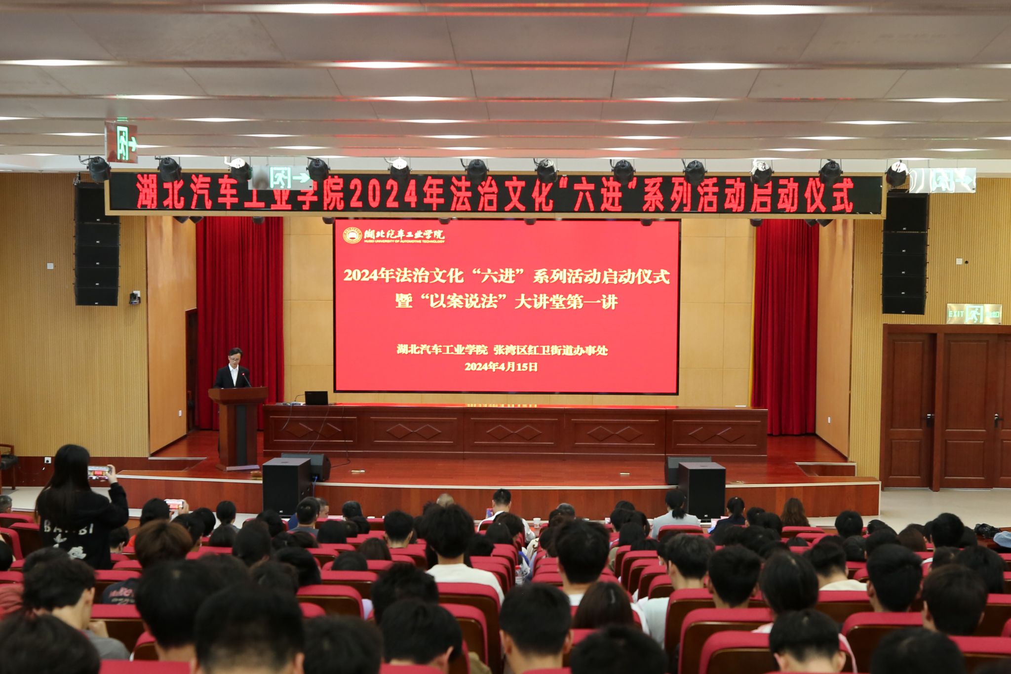 本网讯(文 朱政、晏冉/图 李一凡)为进一步加强大学生法治宣传教育,不断增强学生法治观念、国家安全意识,助力大学生成长成才,在第九个“全民国家安全教育日”来临之际,学校法制办、学工部、团委、保卫处联合张湾区政法委、张湾区法院、红卫街道及周家沟社区在学校产教大楼四楼报告厅开展英国上市公司3652024年法治文化“六进”系列活动启动仪式暨“以案说法”大讲堂第一讲活动。学校党委常委、组织部部长王镇,张湾区法院副院长张磊、张湾区政法委二级主任科员董超、红卫街道党工委副书记尹璐、周家沟社区党委书记汪安丽出席活动,机关分党委各支部书记、支部委员,学工部、保卫处、法制办相关人员及各二级学院学生代表参加会议。活动由学工部部长王关锋主持。
