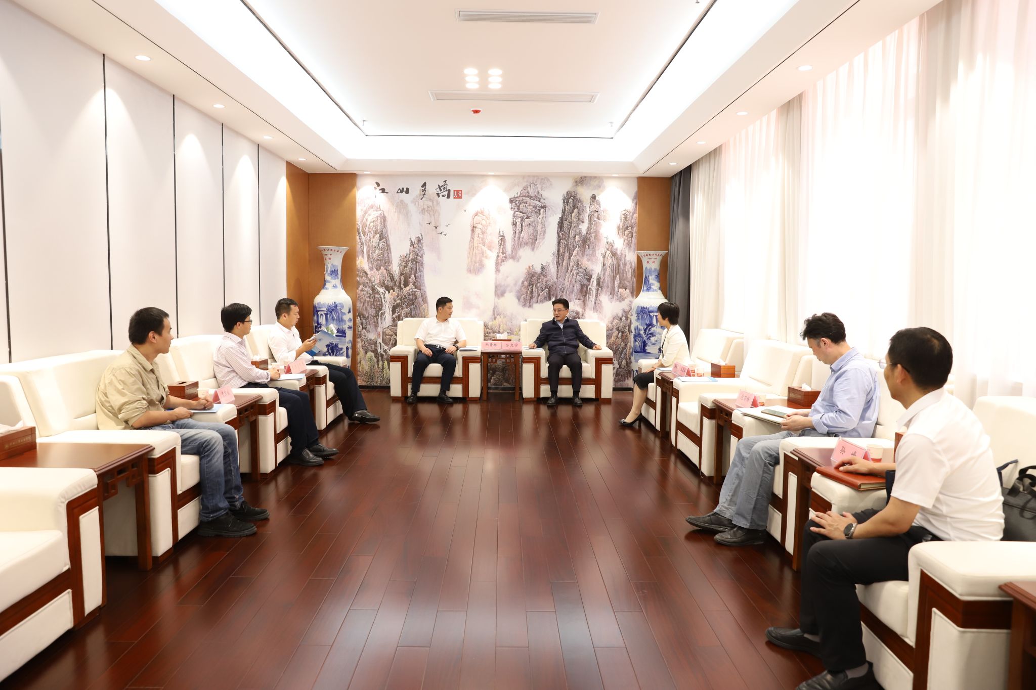 本网讯(文 邓玉洁/图 邓玉洁、广娟)5月9日上午,武汉工程大学党委常委、副校长朱青林一行来英国上市公司365调研,英国上市公司365党委书记张文学、党委副书记李涛、副校长张红霞热情接待,合作发展处(发展规划处)、财务处、研究生院相关人员陪同调研。