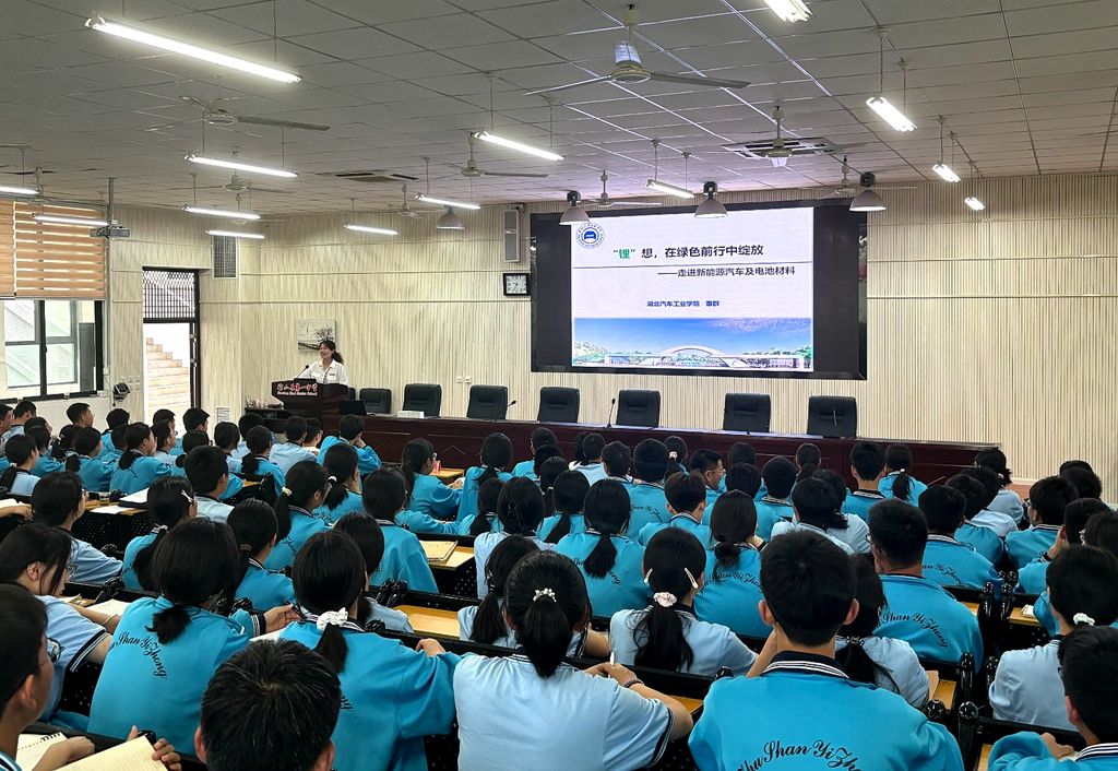 座谈会开展的同时,材料科学与工程学院青年教师覃群以《“锂”想,在绿色中绽放——新能源汽车及动力电池材料》为题,给竹山一中的高一学子作了一场生动的科普报告,赢得现场的阵阵掌声。竹山一中优秀毕业生代表,财务202班梁小溪同学返回母校,为学弟学妹从学校环境、大学生活、个人收获等方面进行了互动交流,介绍了在汽院的学习生活,鼓励竹山一中学子驽力奋发,考取心目中理想的大学。